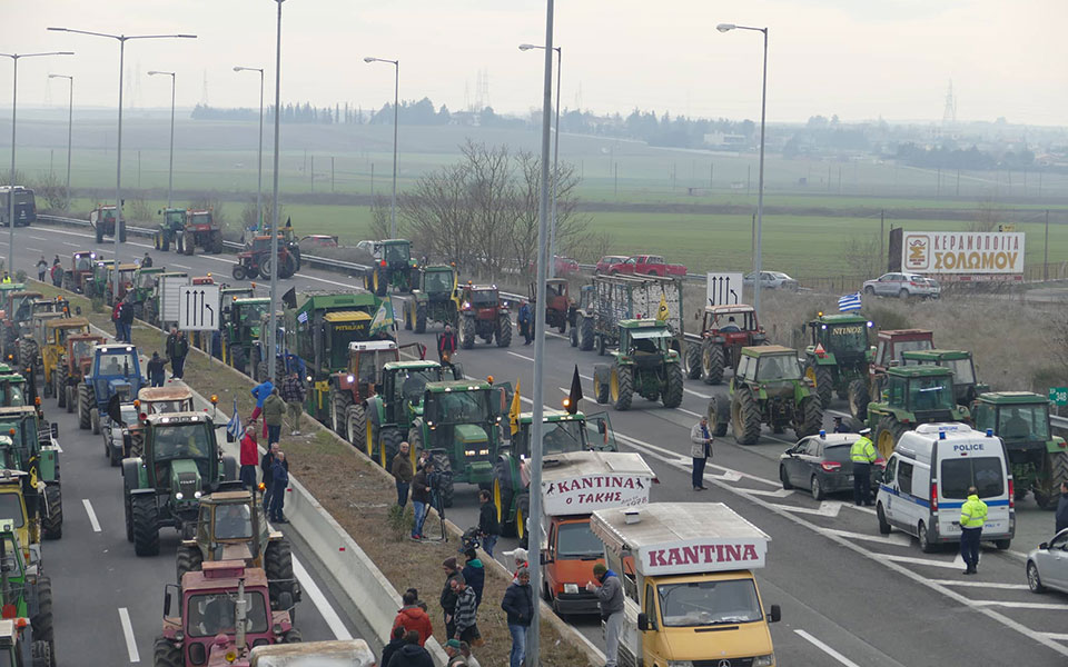 Κλειστή είναι αυτή την ώρα η Εθνική οδός στον κόμβο της Νίκαιας και στα δύο της ρεύματα, προς Θεσσαλονίκη, αλλά και προς Αθήνα, από το μπλόκο των αγροτών.
