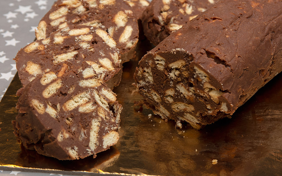 Σαλάμι με σοκολάτα, κάστανα και μπισκότα