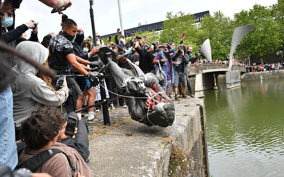 Πολιτική αντιπαράθεση και έντονη δημόσια συζήτηση έχει προκαλέσει στη Βρετανία η αποκαθήλωση, την Κυριακή, στην πόλη Μπρίστολ, από διαδηλωτές κατά του ρατσισμού αγάλματος του εμπόρου σκλάβων του 17ου αιώνα Εντουαρντ Κόλστον. Ο δήμαρχος του Μπρίστολ, Μάρβιν Ρίις, δηλώνει ότι δεν βιώνει κάποια «αίσθηση απώλειας» μετά την αποκαθήλωση του μπρούντζινου αγάλματος, το οποίο στη συνέχεια οι διαδηλωτές έριξαν στο λιμάνι της πόλης. Ο δήμαρχος του Λονδίνου, Σαντίκ Καν, δήλωσε χθες ότι αγάλματα και ονομασίες οδών στο Λονδίνο που συνδέονται με το εμπόριο σκλάβων «θα πρέπει να αποκαθηλωθούν» και ανακοίνωσε τη σύσταση επιτροπής που θα ασχοληθεί με το θέμα. Χθες βράδυ δημοτικοί αξιωματούχοι αποκαθήλωσαν άγαλμα εμπόρου σκλάβων του 18ου αιώνα μπροστά από το Μουσείο London Docklands.