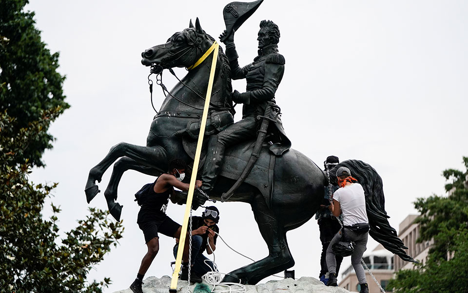 Ουάσιγκτον: Διαδηλωτές επιχείρησαν να ρίξουν το άγαλμα του έβδομου προέδρου των ΗΠΑ Άντριου Τζάκσον