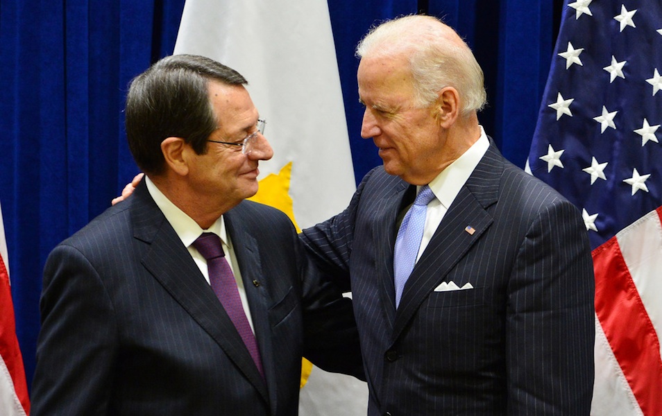 ΝΕΑ ΥΟΡΚΗ-ΑΠΟΣΤΟΛΗ. Ωριαία συνάντηση με τον Αμερικανό αντιπρόεδρο, Τζο Μπάιντεν, ειχε την Παρασκευή στην εδρα των Ην. Εθνών ο Κύπριος πρόεδρος, Νικος Αναστασιαδης, ο οποίος έλαβε διαβεβαιώσεις για την προθεση των ΗΠΑ να παρέμβουν προς την πλευρά της 'Αγκυρας την «κατάλληλη στιγμή», με σκοπό να προχωρήσει η διαδικασία για λύση του Κυπριακού. Ο κ. Μπάιντεν τον ενημέρωσε και για τη δική του συνάντηση με τον Ταγίπ Ερντογάν στην οποία ο Τούρκος πρόεδρος υποσχέθηκε ότι θα συμβάλλει ώστε να λυθεί το Κυπριακό.