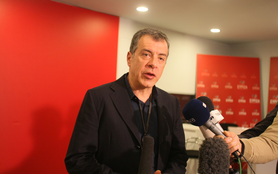 Κατά πληροφορίες, ωστόσο, η χθεσινή συνάντηση Τσίπρα – Θεοδωράκη δεν απεδείχθη εντελώς ατελέσφορη. Διότι μπορεί μεν ο επικεφαλής του «Ποταμιού» να απέρριψε τη βολιδοσκοπική πρόταση να εμπλακεί στην κυβέρνηση (η πρόταση του κ. Τσίπρα αφορούσε το χαρτοφυλάκιο που θα αναλάβει τις μεταρρυθμίσεις στο Δημόσιο), αλλά δεν απέκλεισε τη συμμετοχή του κόμματός του στην εθνική ομάδα διαπραγμάτευσης που προτίθεται να συγκροτήσει ο ΣΥΡΙΖΑ. «Θα περιμένουμε να δούμε ποιες είναι οι θέσεις και οι διεκδικήσεις του ΣΥΡΙΖΑ και αναλόγως θα πράξουμε», είπε μετά τη συνάντηση ο κ. Θεοδωράκης, επαναλαμβάνοντας, ωστόσο, ότι για να δώσει το πράσινο φως για τη σύμπραξη του κόμματός του στις συζητήσεις με τους εταίρους θα πρέπει εξ αρχής ο ΣΥΡΙΖΑ να έχει δεσμευθεί ότι δεν θα διακυβεύσει την ομαλή πορεία της χώρας εντός του ευρώ.