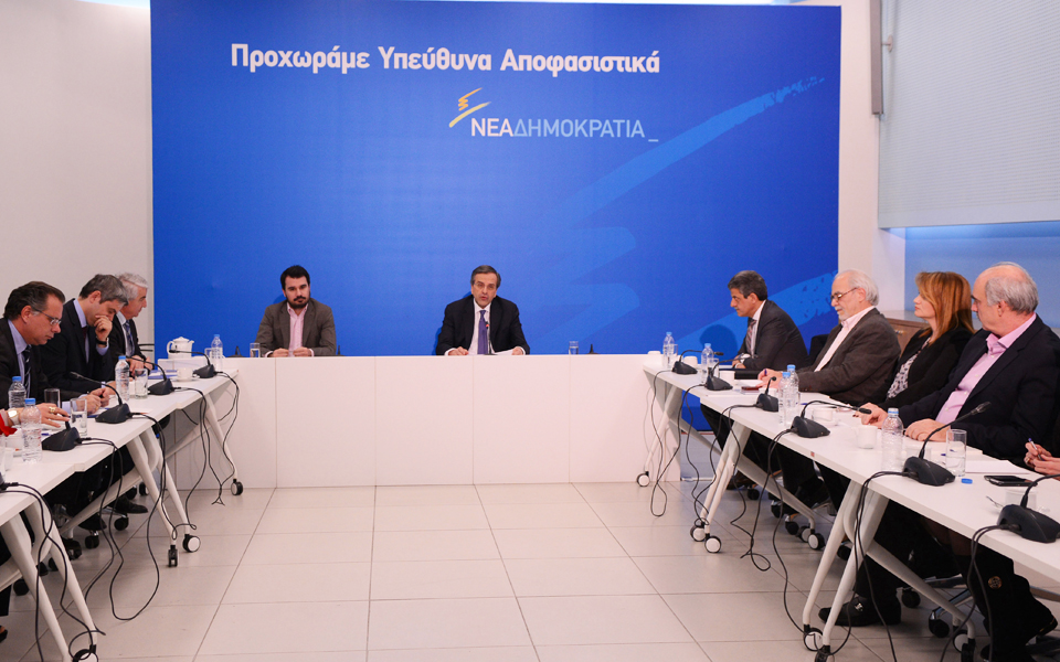 Απαντώντας στην κριτική που του ασκήθηκε για διαμόρφωση του συνόλου της πολιτικής και προεκλογικής στρατηγικής από την κλειστή ομάδα συνεργατών του, ο κ. Σαμαράς επεδίωξε να εκτονώσει την ένταση. Αρνήθηκε ότι η Ν.Δ. «καλλιέργησε τον φόβο… επισημάναμε τους κινδύνους και είπαμε την αλήθεια… οι πρώτες ενδείξεις επιβεβαιώνουν απολύτως την αλήθεια όσων έλεγα και για την οικονομική πολιτική και για την Παιδεία και για την ασφάλεια». Ανακοίνωσε, επίσης, τη συγκρότηση άτυπου πολιτικού συμβουλίου με τη συμμετοχή του Ευ. Μεϊμαράκη, του Ανδρ. Παπαμιμίκου, στο οποίο θα μετέχουν οι τρεις νέοι κοινοβουλευτικοί εκπρόσωποι (κατά σειρά οι Κυρ. Μητσοτάκης, Αδ. Γεωργιάδης, Γ. Βρούτσης), η νέα γραμματέας της Κ.Ο. Αννα Ασημακοπούλου, αλλά και ο «γαλάζιος» αντιπρόεδρος στη Βουλή που, όπως ανακοίνωσε, θα είναι ο Νικ. Κακλαμάνης.