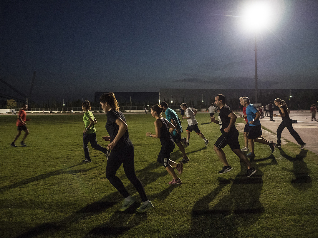 Ενα πρόσφατο απόγευμα στο προπονητήριο του ΟΑΚΑ, υπό το φως των προβολέων, δεκάδες ερασιτέχνες δρομείς συμπλήρωναν λίγα ακόμη χιλιόμετρα μέχρι την αναμέτρησή τους σε δύο εβδομάδες με την απόσταση του Μαραθωνίου.