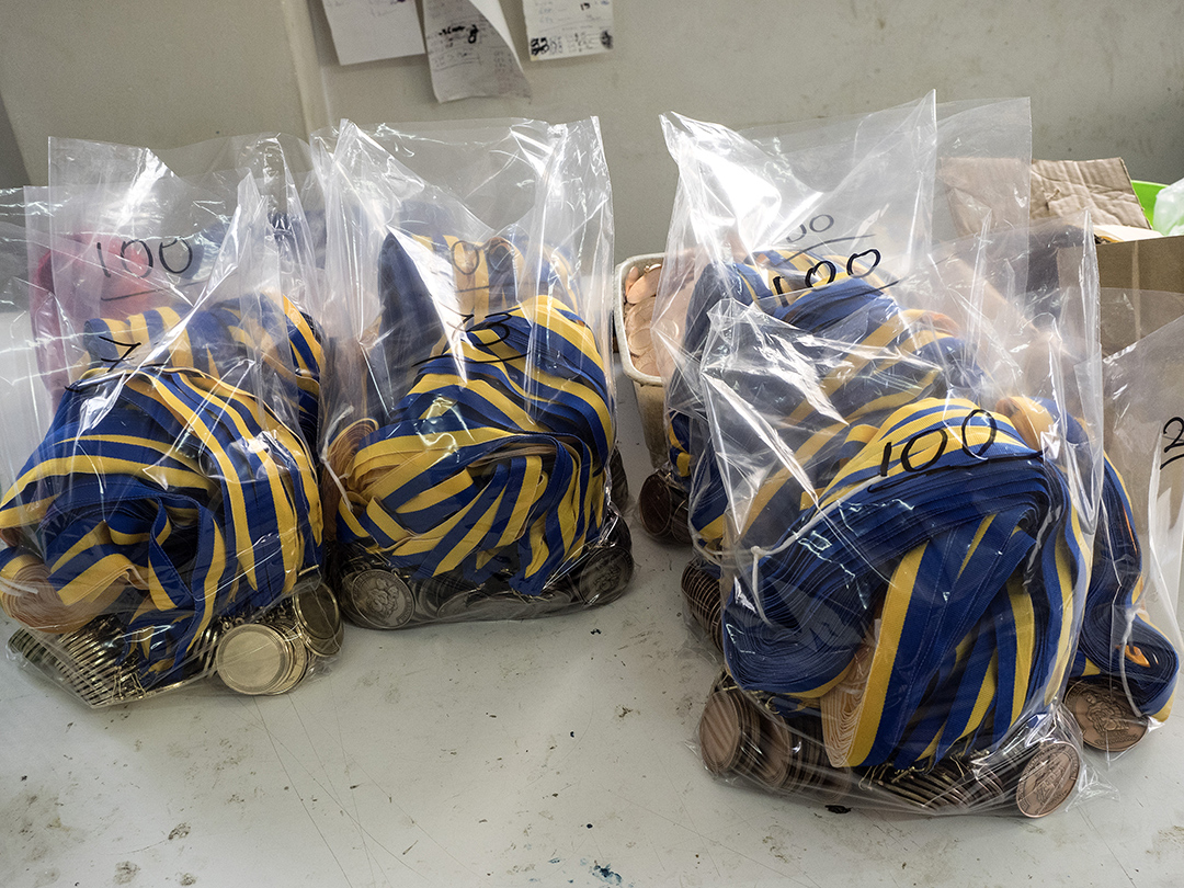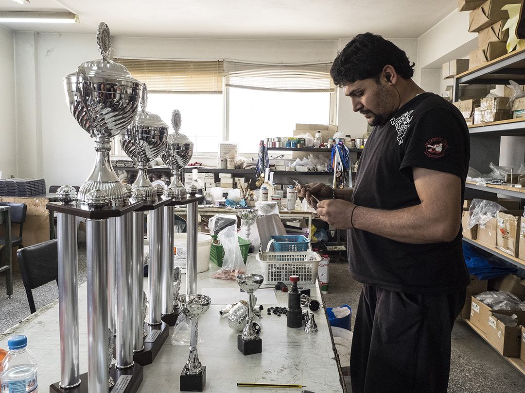 Για κάποιον άλλο, όμως, στη Δυτική Αττική τα ίδια αντικείμενα έχουν διαφορετική αξία: του έδωσαν οικονομική «ανάσα» στην περίοδο της κρίσης. Σε μια τριώροφη βιοτεχνία στο Μενίδι κόβονται, χαράσσονται και συναρμολογούνται κάποια από τα μετάλλια και τα κύπελλα που απονέμονται σε αγώνες δρόμου της Ελλάδας.