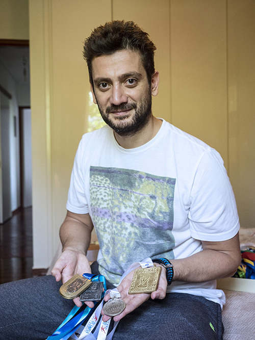 «Νιώθω ιδιαίτερα συγκινημένος όταν το βλέπω αυτό», λέει ο Μάριος Κρητικός. Στα χέρια του κρατάει το μετάλλιο του Μαραθωνίου της Αθήνας από τη διοργάνωση του 2011, την πρώτη του συμμετοχή στην απόσταση των 42.195 μέτρων. «Από το ίδιο απόγευμα σκεφτόμουν πού θα είναι ο επόμενος αγώνας», τονίζει.