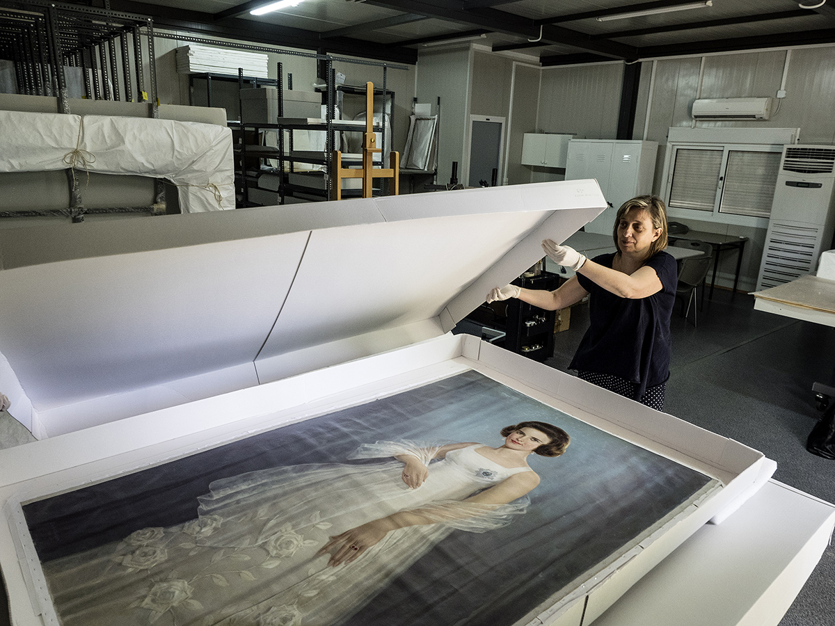 Το μεγάλο λευκό κουτί ανοίγει. Η Μαρία Μερτζάνη και η Μαρία Αργυροπούλου σηκώνουν με ευλάβεια το χάρτινο καπάκι, σαν να φοβούνται ότι θα σπάσει. Μέσα στο κουτί, απλωμένος με φροντίδα, βρίσκεται ένας πίνακας. Το πρόσωπο είναι εύκολα αναγνωρίσιμο. Είναι η τέως βασίλισσα Αννα-Μαρία, ζωγραφισμένη το 1965.