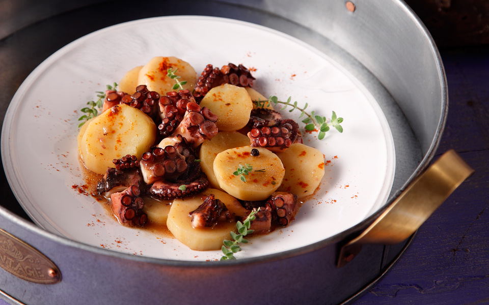 «Τη συνταγή αυτή τη συναντάµε στην περιοχή της Γαλικίας, στο βορειοδυτικό τμήμα της Ισπανίας, και λέγεται και "χταπόδι της γιορτής", µιας και είναι συνδεδεµένο µε τις πιο γνωστές θρησκευτικές γιορτές (ferias) της. Σύμφωνα με την παράδοση, για να µαλακώσει το χταπόδι το χτυπάει ο άντρας 33 φορές, ενώ η γυναίκα 40 φορές, τονίζοντας αυτήν τη λεπτοµέρεια ως έναν από τους παράγοντες που θα καθορίσουν την επιτυχία του πιάτου. Τέτοιου είδους λεπτοµέρειες συναντάµε σε συνταγές από όλο τον κόσµο, ειδικά σε αυτές που χαρακτηρίζονται από την απλότητα της τεχνικής, αλλά και το µινιµαλισµό στα υλικά».