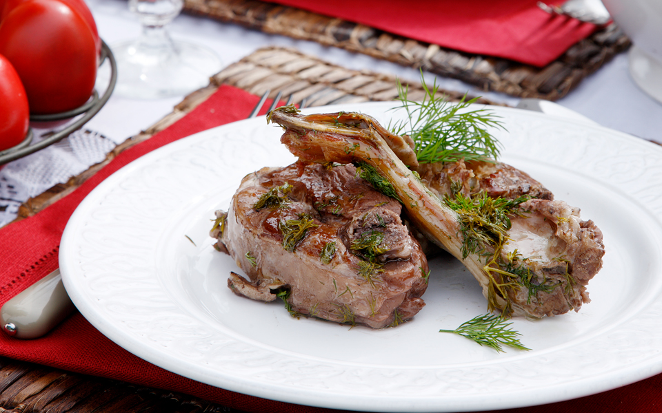 - 3 κιλά αρνάκι γάλακτος (ή κατσικάκι), από σπάλα και μπούτι, κομμένο σε κομμάτια – μερίδες βάρους περίπου 300 γρ. το καθένα