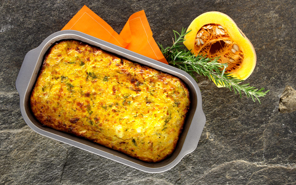 Ραντίζουμε με το υπόλοιπο λάδι και ψήνουμε για 20 – 30 λεπτά ή μέχρι να ροδίσει και να πήξει. Η κολοκύθα που έχουμε σοτάρει δίνει μια μελωμένη υγρασία στην πίτα, ενώ αυτή που μπαίνει ωμή στο μείγμα διατηρείται κάπως ζωντανή, ελαφραίνοντας το όλον.