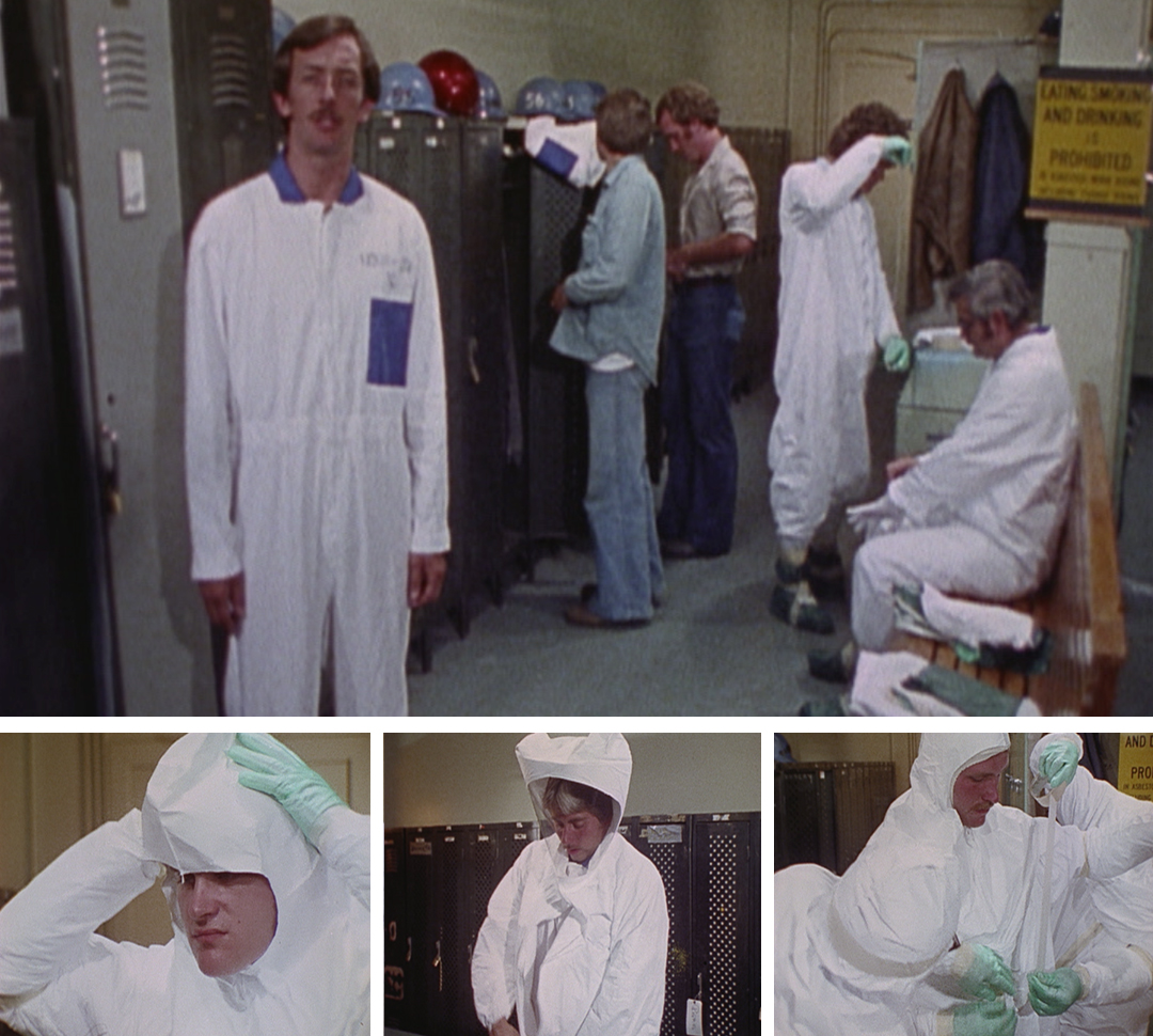 Εικόνες από το εκπαιδευτικό βίντεο του Αμερικανικού Πολεμικού Ναυτικού για την αφαίρεση υλικών αμιάντου.