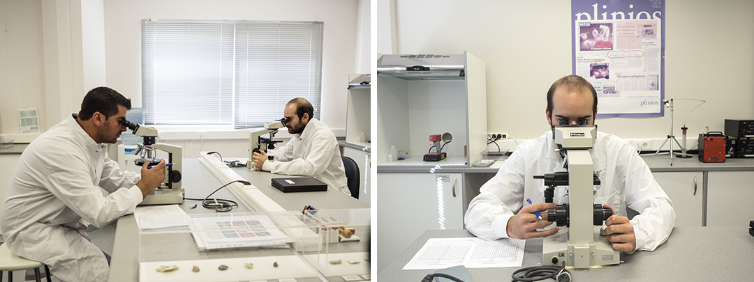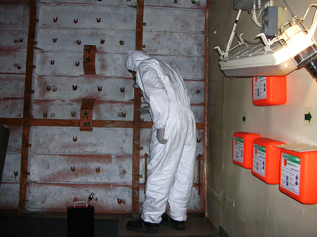 Εργαζόμενοι στην εταιρεία ΠΛΙΝΙΟΣ Α.Ε. η οποία αναλαμβάνει την ανίχνευση αμίαντου και άλλων επικίνδυνων υλικών.