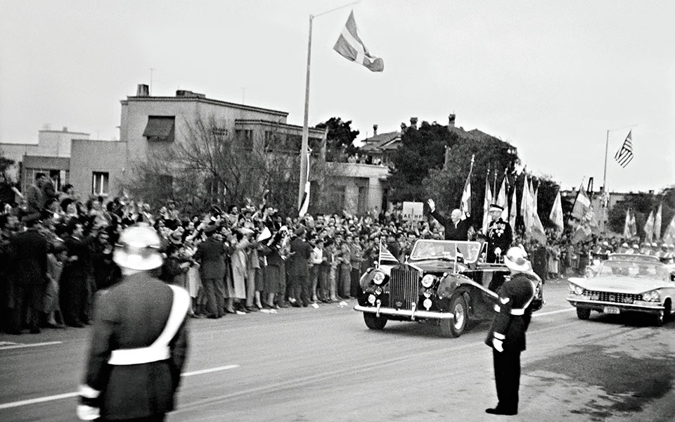 Δευτέρα πρωί λοιπόν, 14 Δεκεμβρίου 1959, τα αγόρια με μακρύ παντελόνι και τα κορίτσια με το παλτό πάνω από τη μαθητική ποδιά συγκεντρωθήκαμε στο σχολείο έχοντας μαζί και το απαραίτητο κολατσιό μας. Λίγο μετά το μεσημέρι, χωριστά τα αγόρια από τα κορίτσια, στριμωχτήκαμε στα παλιά λεωφορεία. Τσουλάδα στο τζάμπα. Γέλια και πειράγματα. Ηταν η μεγάλη μέρα. Ολοι προσδοκούσαμε να δούμε τον μεγάλο πρόεδρο, τον στρατηγό Ντουάιτ Αϊζενχάουερ. Τον ελευθερωτή της Ευρώπης από τους Γερμαναράδες, όπως μου είχε πει ο πατέρας μου.