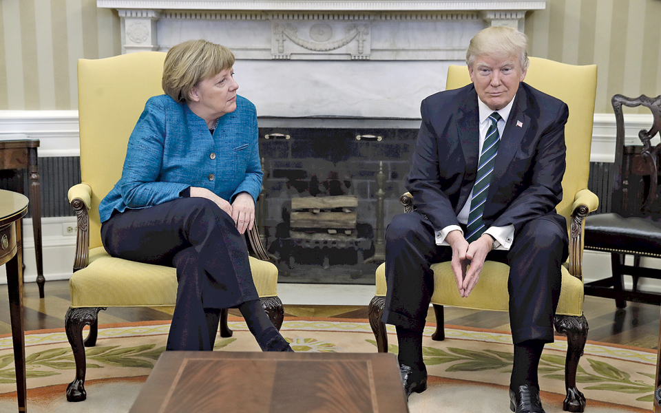 ΟΥΑΣΙΓΚΤΟΝ. Περίσσεψαν τα χαμόγελα και οι αβρότητες κατά τη χθεσινή υποδοχή της καγκελαρίου Αγκελα Μέρκελ από τον Αμερικανό πρόεδρο Ντόναλντ Τραμπ στο κατώφλι του Λευκού Οίκου. Ηταν η πρώτη συνάντηση των δύο ηγετών που αντιπροσωπεύουν δύο διαφορετικούς κόσμους πλέον, την Ευρώπη της ανεκτικότητας, των ανοικτών θυρών και της εξωστρέφειας και την Αμερική της μισαλλοδοξίας, της ισλαμοφοβίας και της εσωστρέφειας.
