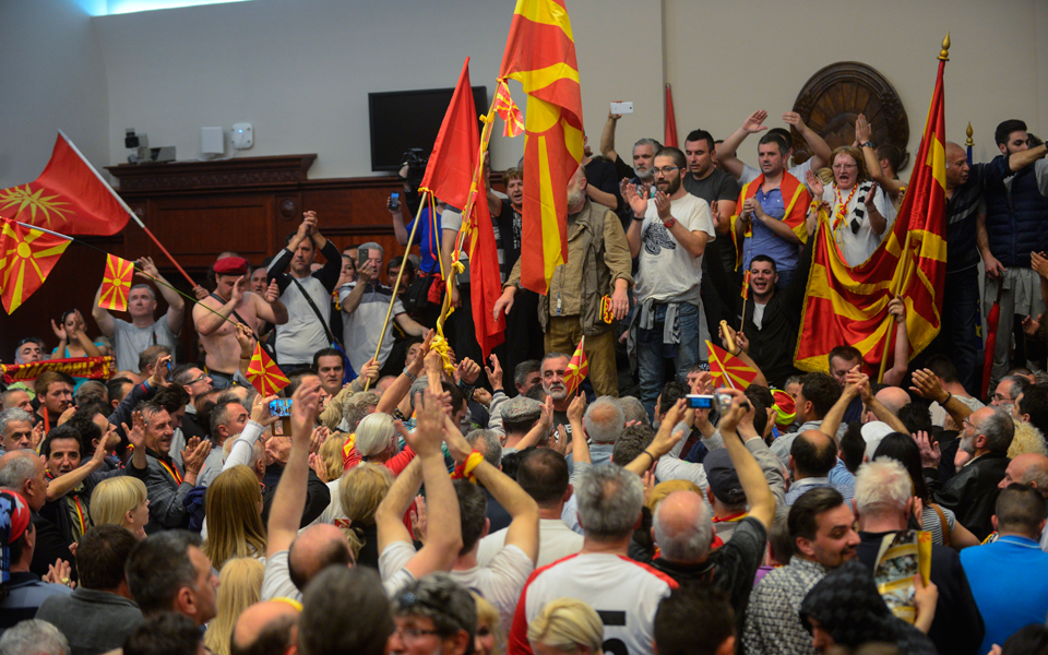 Υπενθυμίζεται ότι χθες βράδυ οπαδοί του απερχόμενου πρωθυπουργού Νίκολα Γκρουέφσκι, εισέβαλαν στο κοινοβούλιο σε μια προσπάθειά τους να αποτρέψουν την εκλογή του Αλβανού Ταλάτ Τζαφέρι στη θέση του νέου προέδρου της Βουλής. Ακολούθησαν συγκρούσεις με συνέπεια να τραυματιστούν 77 άτομα, ανάμεσά τους και πολλοί βουλευτές της Σοσιαλδημοκρατικής Ένωσης αλλά και των αλβανικών κομμάτων, καθώς και αστυνομικοί.