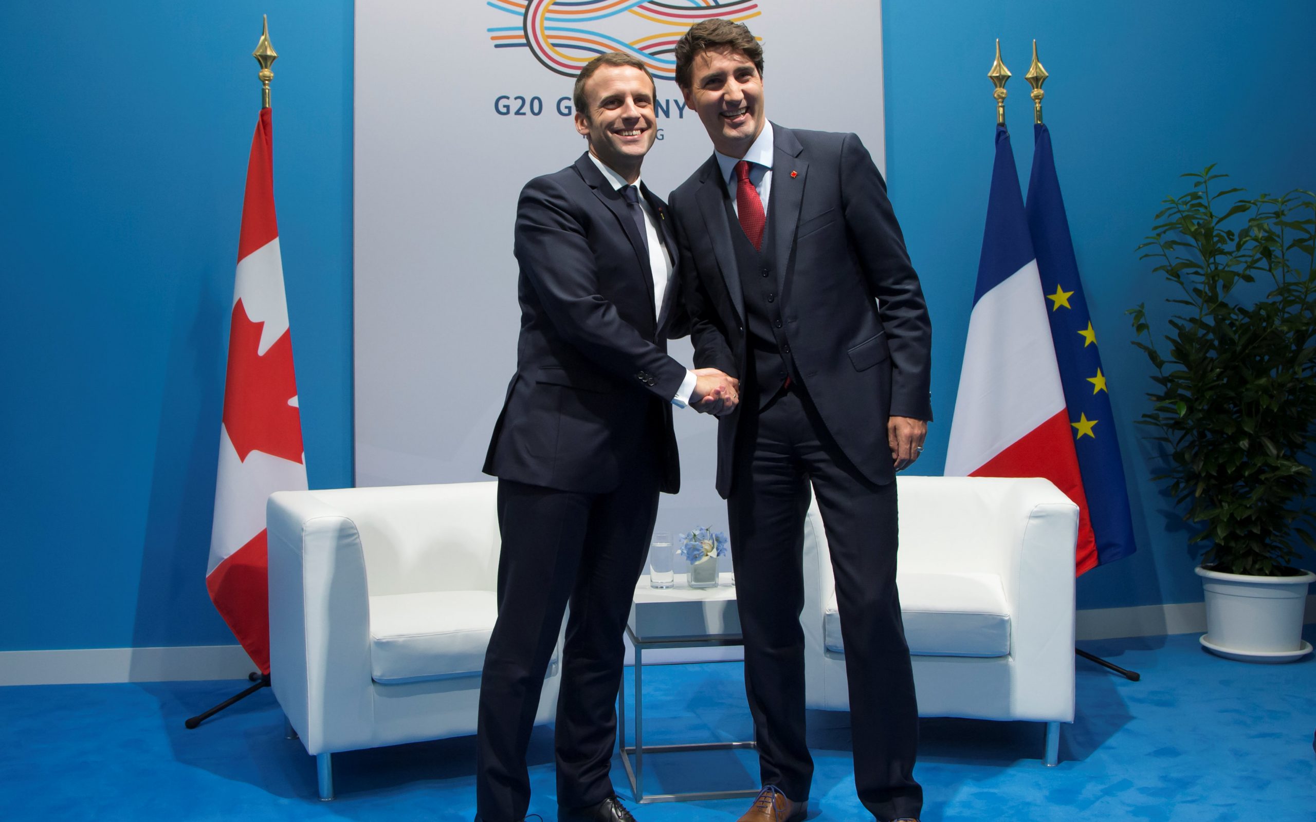 Ο πρόεδρος της Γαλλίας, Εμανουέλ Μακρόν και ο Καναδός πρωθυπουργός, Τζάστιν Τριντό εξέφρασαν σήμερα την βούλησή τους να υπερασπιστούν τη συμφωνία του Παρισιού για το κλίμα αλλά και το ελεύθερο εμπόριο απέναντι στην κυβέρνηση του Αμερικανού προέδρου Ντόναλντ Τραμπ, στη συνάντηση που είχαν στο περιθώριο της συνόδου της G20 στο Αμβούργο.