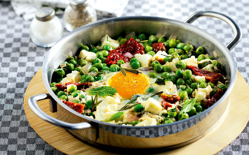 Αν όμως τα θέλουμε πιο καλοψημένα, τότε τη φέτα θα την προσθέσουμε στα 2 τελευταία λεπτά μαγειρέματος και όχι πιο πριν, γιατί θα λιώσει και θα βγάλει υγρά. Σερβίρουμε τα αυγά με τον αρακά, αμέσως, με ζεστό χωριάτικο ψωμί και μαύρες ελιές.