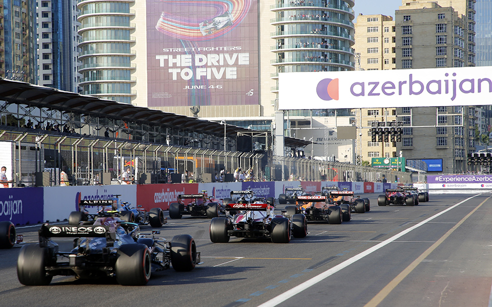Ο έκτος αγώνας της χρονιάς, ο χιλιοστός τεσσαρακοστός πρώτος (1041) σε απόλυτη αρίθμηση, διεξήχθη την Κυριακή 6 Ιουνίου 2021 στην πίστα του Μπακού (Baku City Circuit).Το Μπακού (αζερικά: Bakı) είναι η πρωτεύουσα του Αζερμπαϊτζάν και σύμφωνα με την απογραφή του 2015 η πόλη έχει 2.225.800 κατοίκους. Βρίσκεται στις νότιες ακτές της χερσονήσου Αμπσερόν της Κασπίας θάλασσας και αποτελείται από την Εσωτερική πόλη (Icheri Sheher) και Εξωτερική πόλη (Bayır Sheher). Η ίδρυση της πόλης ανάγεται στον 6ο αιώνα μ.Χ. Η πόλη είναι η γενέτειρα του σκακιστή Γκάρι Κασπάροφ. Είναι η ανατολικότερη πρωτεύουσα της Ευρώπης και μία από τις ανατολικότερες πόλεις της.