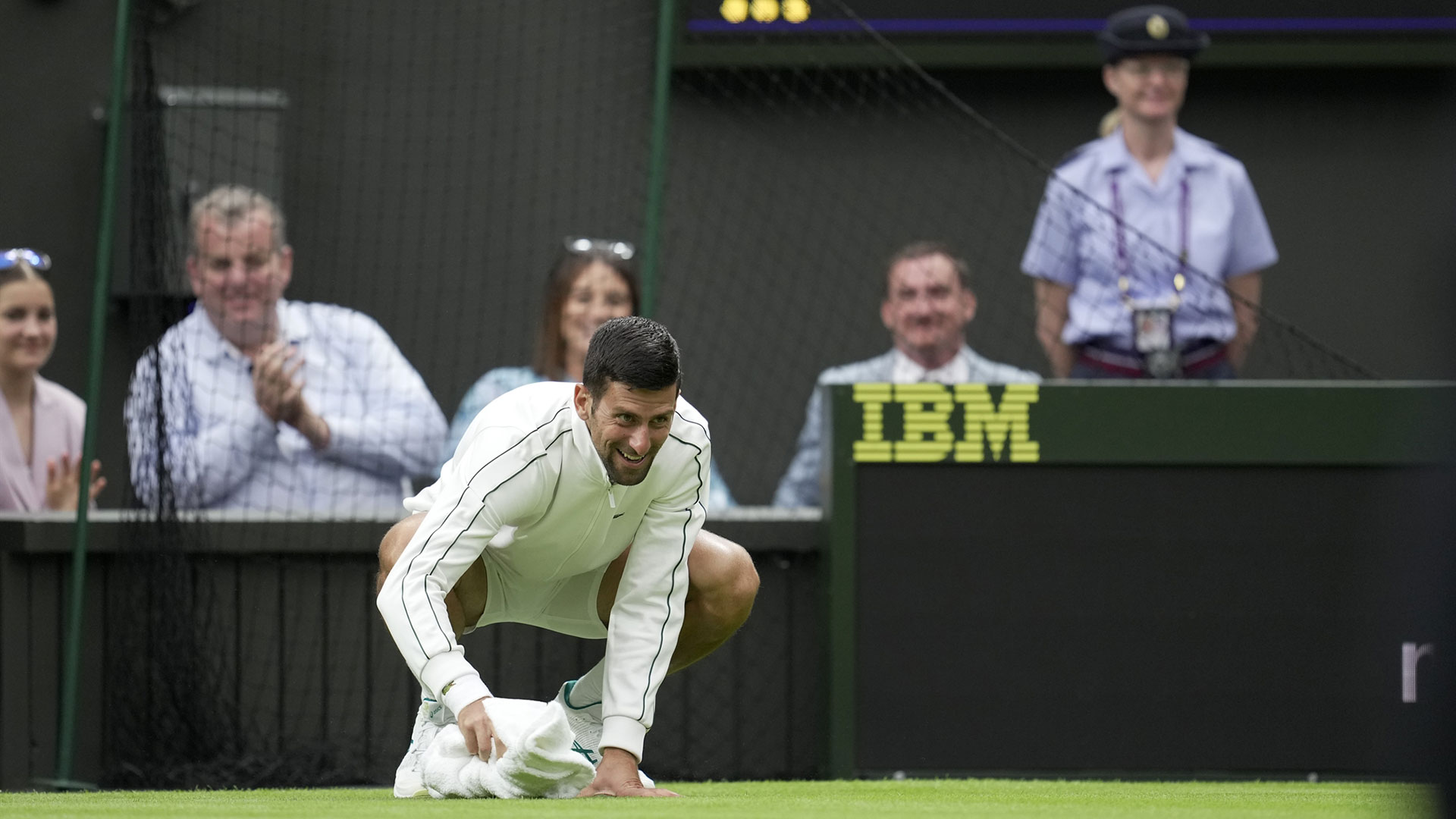 Σε ένα από τα πρώτα παιχνίδια της φετινής διοργάνωσης ο Νόβακ Τζόκοβιτς αντιμετώπισε τον Πέδρο Κατσίν. Ενώ ο Σέρβος προηγείτο με 6-3, η βροχή μούσκεψε το γρασίδι με αποτέλεσμα ο κορυφαίος, εν ενεργεία, τενίστας στον κόσμο να προσπαθήσει να το στεγνώσει με πετσέτα. Τελικά, ο Τζόκοβιτς υπερίσχυσε με 3-0. Η Ιγκα Σβιόντεκ νίκησε τη Λιν Ζου με 6-1, 6-3 και πήρε το «εισιτήριο» για τον 2ο γύρο.