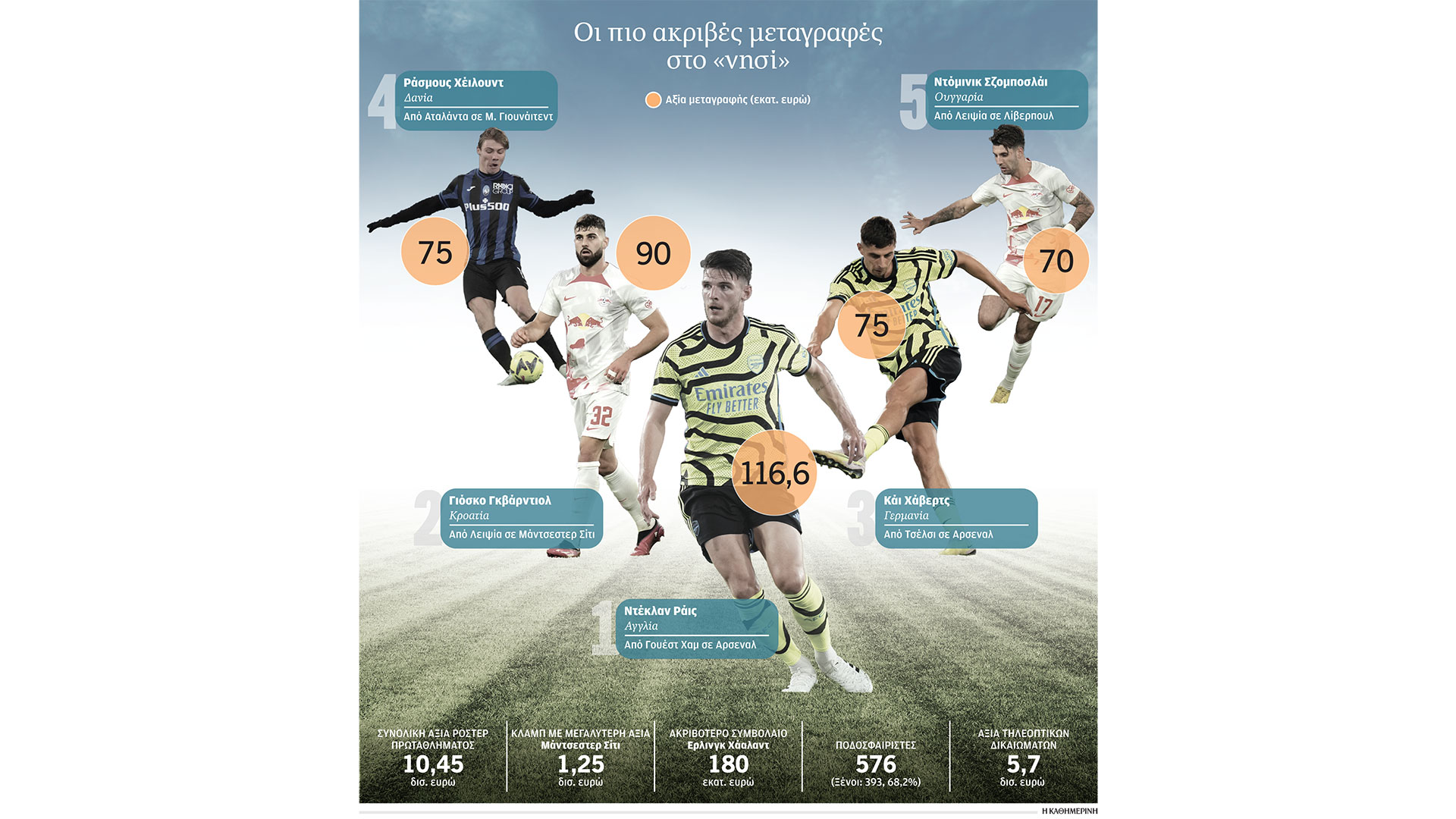Περιζήτητες προσφορές, συμφωνίες δισεκατομμυρίων, συμβόλαια που ανανεώνονται ολοένα και με μεγαλύτερα ποσά, τόσο εντός Βρετανίας όσο και στο εξωτερικό. Ενα από τα μεγαλύτερα αθλητικά θεάματα του πλανήτη, το πιο δημοφιλές και πλουσιότερο πρωτάθλημα του κόσμου, η Πρέμιερ Λιγκ, ξεκίνησε. Για πολλούς είναι και το καλύτερο. Το πιο ανταγωνιστικό, το πιο συναρπαστικό. Κάποιοι έχουν τις ενστάσεις τους, το σίγουρο όμως είναι πως κι αυτοί παραδέχονται πως ο χορός εκατομμυρίων που απλώνεται στα γήπεδά του, δεν συγκρίνεται με καμία άλλη ευρωπαϊκή Λίγκα πρώτης ταχύτητας.