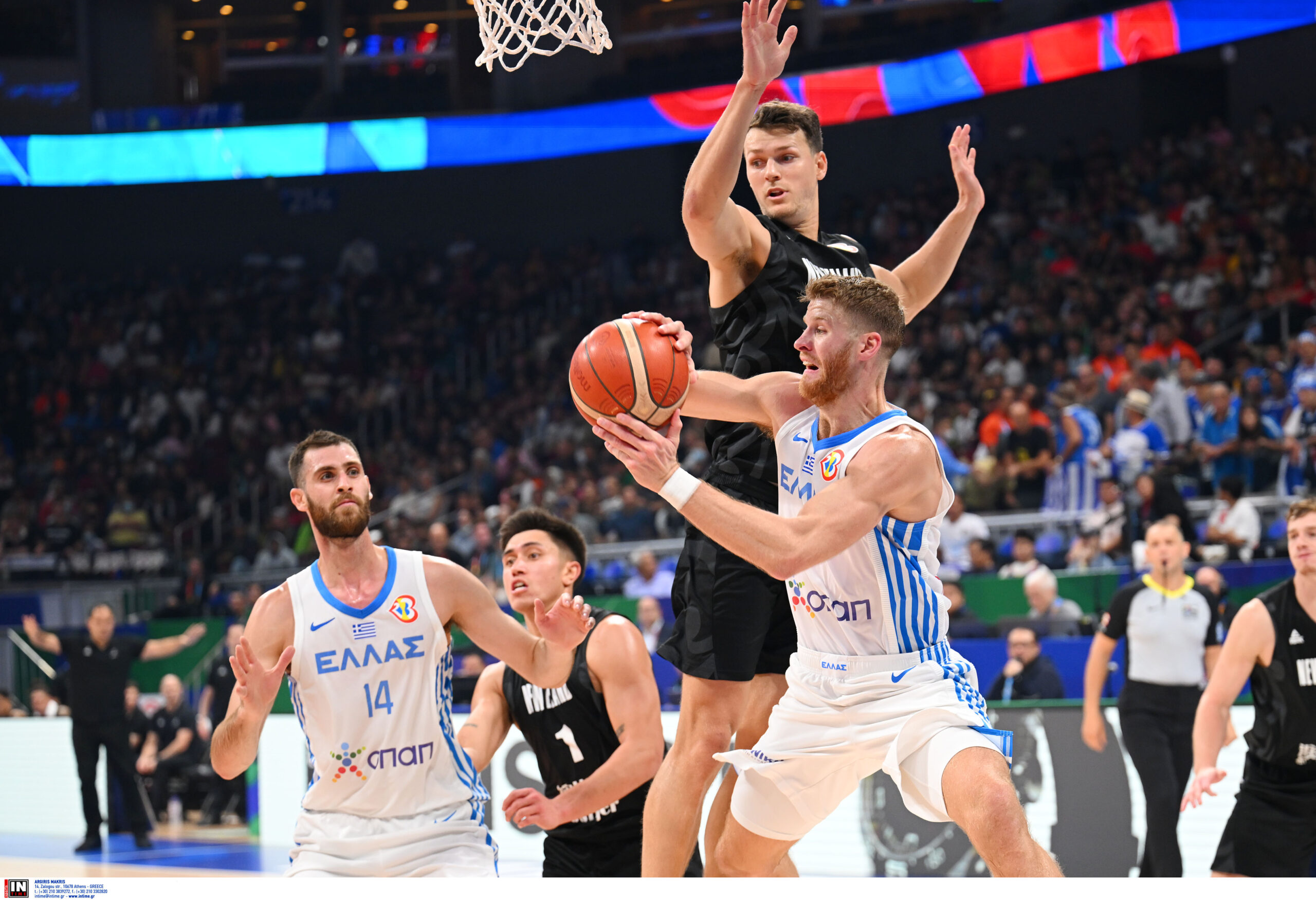 Η δ’ περίοδος ξεκίνησε στην ίδια λογική. Ενα λεπτό και 10’’ αργότερα η Εθνική ισοφάρισε σε 54-54 και στην επόμενη επίθεση πήρε το προβάδισμα με 59-54 και συνολικό σερί με την γ’ περίοδο 31-7! Οι Νεοζηλανδοί άρχισαν να λυγίζουν από την πίεση, «χάλασαν» το μυαλό τους, τα ποσοστά τους στην επίθεση εξανεμίστηκαν, τα ελληνικά χέρια «λύθηκαν» και τα σουτ άρχισαν να μπαίνουν και κάπως έτσι το νερό μπήκε στο αυλάκι της πρόκρισης με την Εθνική να φθάνει στο +12 (73-61) 3 λεπτά και 43’’ πριν από τη λήξη του αγώνα με τον Παπαπέτρου να παίρνει «φωτιά» επιθετικά και τον Λαρεντζάκη να είναι συγκλονιστικός τόσο σε άμυνα όσο και σε επίθεση.