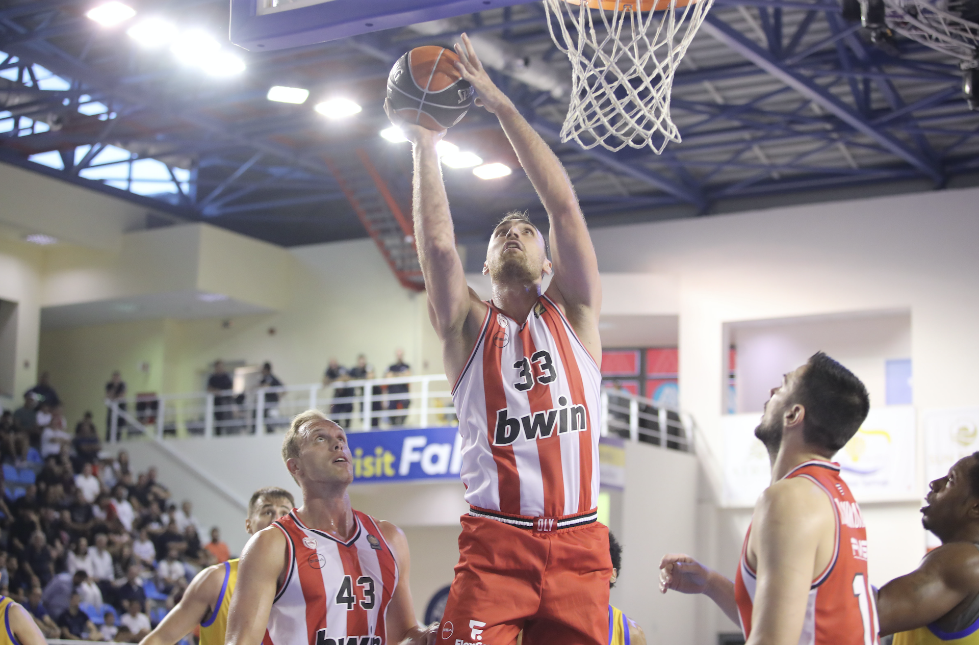 ΟΛΥΜΠΙΑΚΟΣ: 19/38 διπ., 12/23 τριπ., 10/17 βολές, 35 ριμπ., 22 ασίστ, 12 λάθη, 12 κλεψίματα, 3 κοψίματα