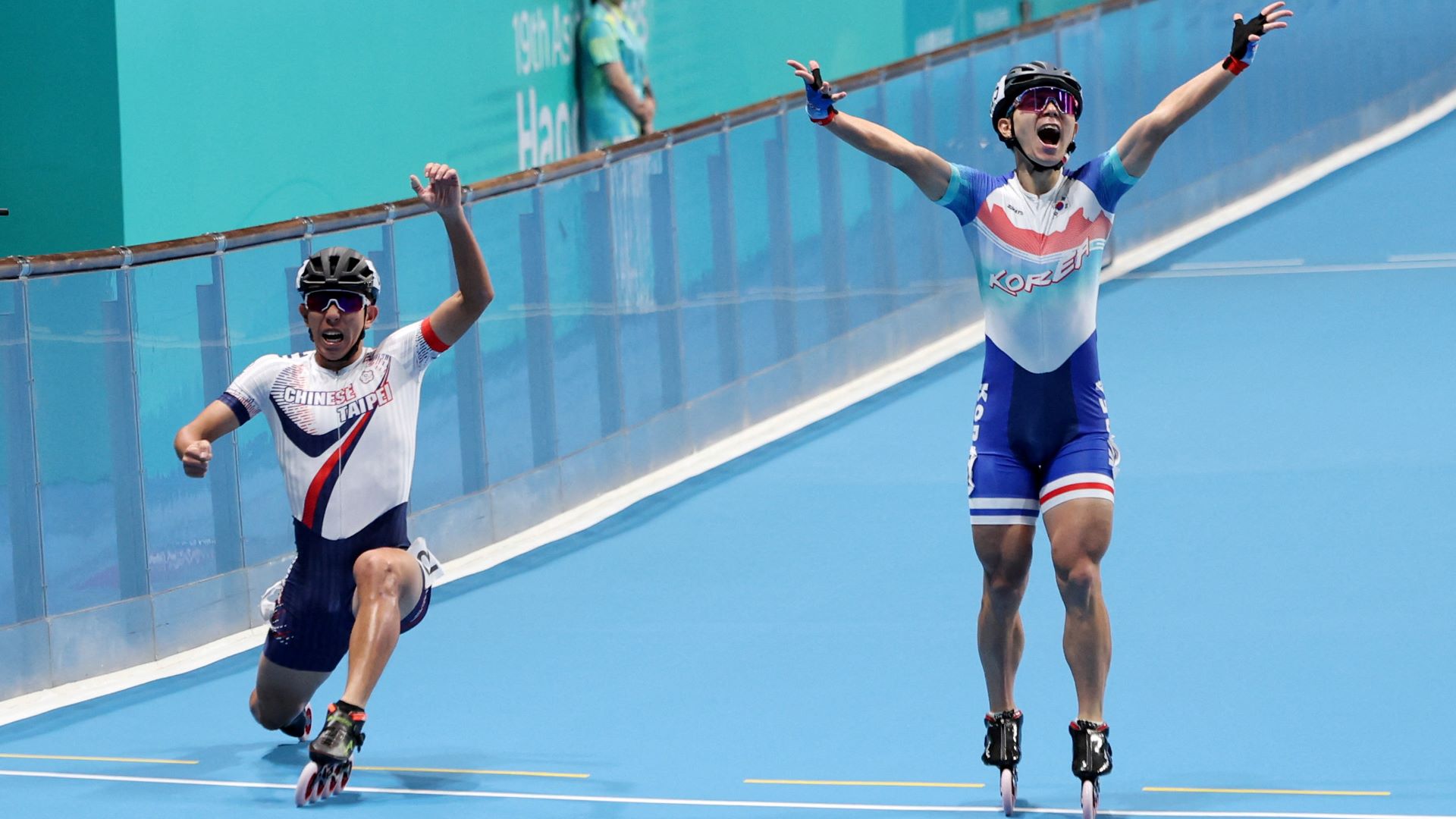 South Korean 🇰🇷 roller-skater Jung Cheol-won lost Korea a Gold Medal 🥇 after an early celebration which cost Chinese Taipei to win the 3000m relay race by 0.01 seconds 🚨