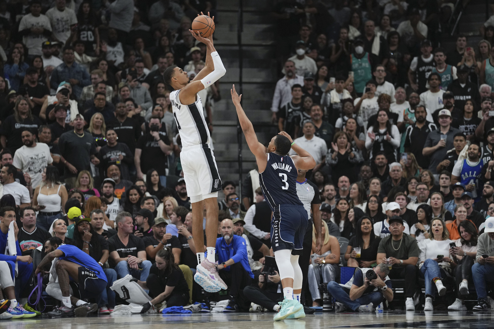 Για την ιστορία, στο πρώτο παιχνίδι του στο ΝΒΑ ξημερώματα Πέμπτης, ο Βικτόρ Γουεμπανιαμά επηρεάστηκε για λίγο από το τρακ ενός 20χρονου πρωτάρη, αλλά ξεδίπλωσε στο παρκέ μερικά από τα αδιαμφισβήτητα προσόντα του. Το ντεμπούτο του δεν συνδυάστηκε με νίκη καθώς οι Σπερς ηττήθηκαν στο Σαν Αντόνιο με 119-126 από τους Ντάλας Μάβερικς του Λούκας Ντόντσιτς, ο ίδιος όμως πρόλαβε να πετύχει 15 πόντους με 3/4 δίποντα, 3/5 τρίποντα, 5 ριμπάουντ, 2 ασίστ, 2 κλεψίματα και ένα κόψιμο σε 23 λεπτά συμμετοχής, αλλάζοντας μέχρι ενός σημείου τη ροή ενός αγώνα που είχε ξεκινήσει άσχημα για την ομάδα του.
