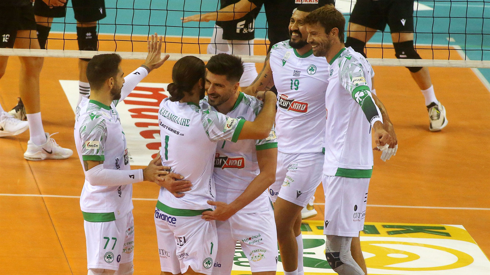 Σπουδαία εκτός έδρας νίκη πήρε ο Παναθηναϊκός, καθώς επικράτησε του ΠΑΟΚ στο ντέρμπι της 2ης αγωνιστικής με 3-2 (25-22, 23-25, 25-16, 27-29, 15-10). Η ομάδα της Θεσσαλονίκης αγωνίστηκε χωρίς τον βασικό της ακραίο Τόμας Ρούσο, με αποτέλεσμα ο βασικός διαγώνιος Μενέλαος Κοκκινάκης να παίξει ως ακραίος.