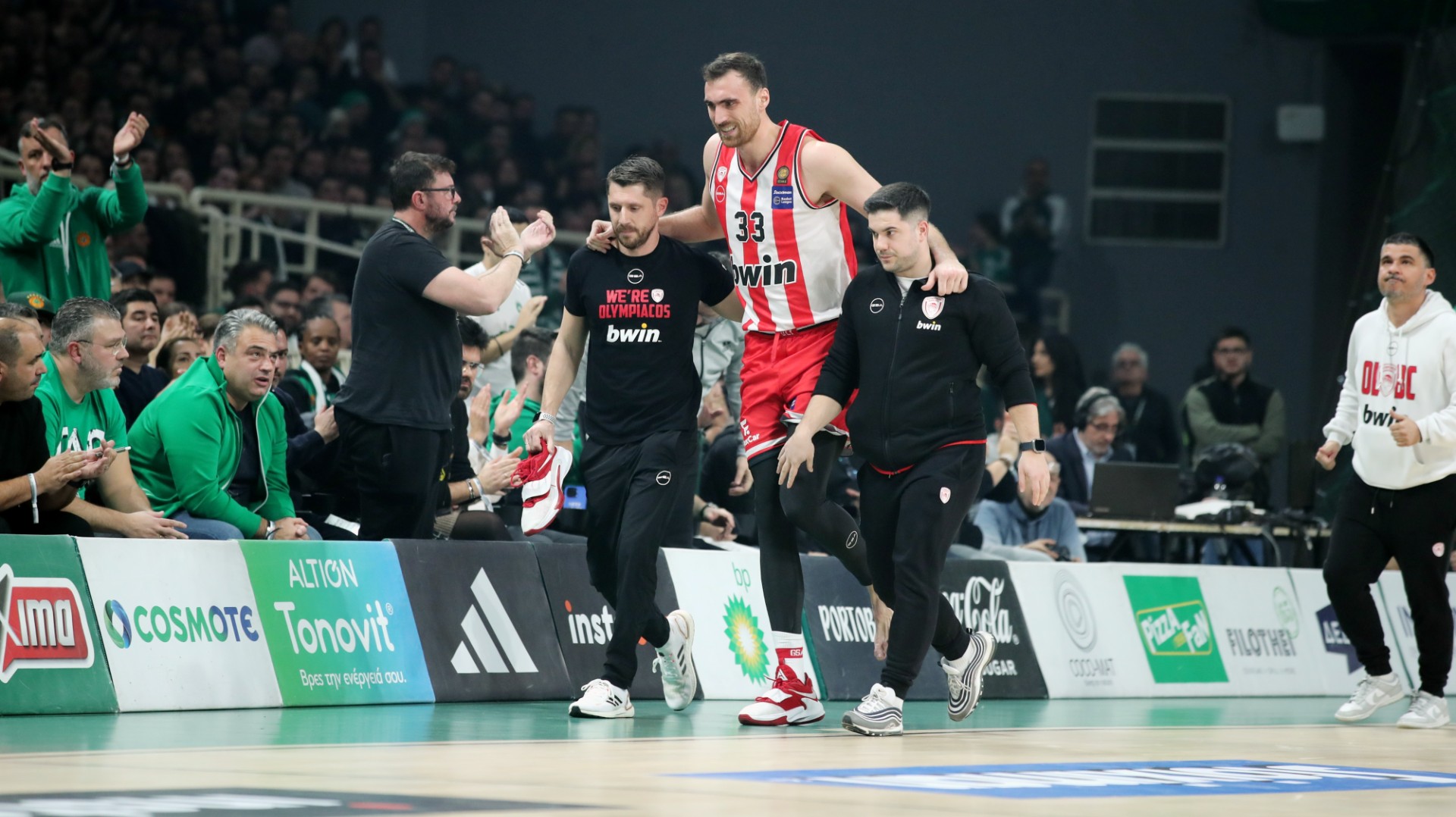 Ο Ολυμπιακός είδε κατά τη διάρκεια του μεγάλου ντέρμπι με αντίπαλο τον Παναθηναϊκό (85-80) στο ΟΑΚΑ τον Νίκολα Μιλουτίνοφ να αποχωρεί από το παρκέ υποβασταζόμενος.