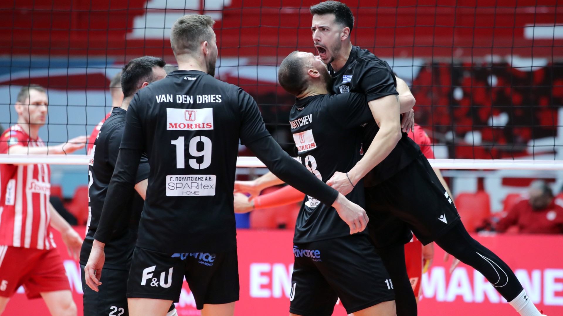 Στο πρώτο σετ ο ΠΑΟΚ επικράτησε 27-25, με τον Σαμοϊλένκο και τον Βαν ντεν Ντρις να κάνουν τη διαφορά στο τέλος.