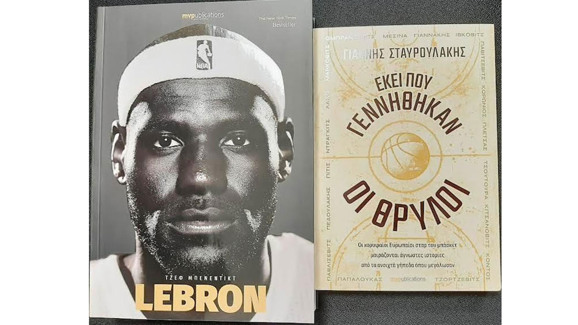 Δύο βιβλία που πρέπει να μελετήσουν όλοι οι φίλοι του μπάσκετ, κυκλοφορούν από την ΜVPUBLICATIONS. Το ένα αφορά στη ζωή του σταρ του ΝΒΑ, ΛεMπρόν Τζέιμς. Πρόκειται για τη βιογραφία του σπουδαίου αυτού μπασκετμπολίστα μέσα από την πένα του Τζεφ Μπένεντικτ, σε μετάφραση του Βασίλη Πουλάκου και με τίτλο «ΛεMπρόν».