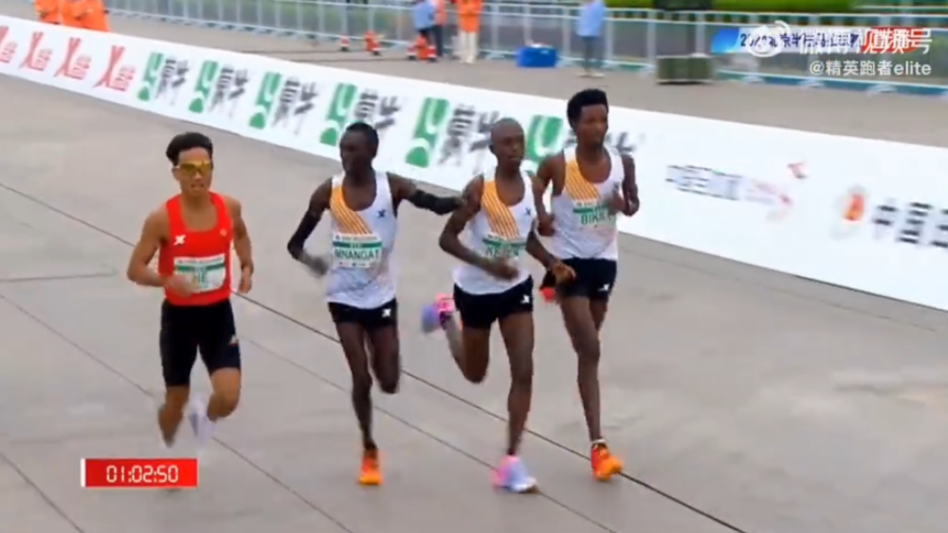 Chinese #marathon record holder He Jie won the championship at the 2024 #Beijing Half Marathon on April 14. However, the live broadcast footage suggests that He may have been “escorted” to victory by three foreign runners, sparking controversy. https://t.co/5akyafiKL8 pic.twitter.com/4eVF66Ebdd