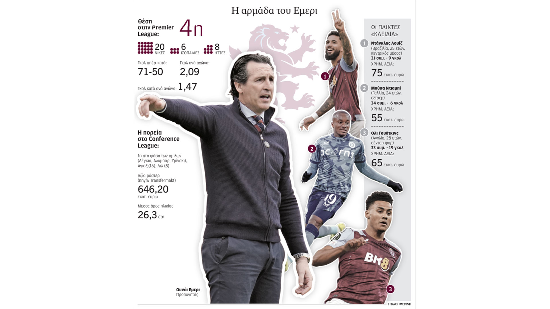 Η εμμονή του Εμερι σε αυτά τα επιθετικά συστήματα ακόμη κι όταν χρειάζεται να κρατήσει το αποτέλεσμα, ανεβάζοντας ψηλά την αμυντική γραμμή, δημιουργεί ζητήματα στα μετόπισθεν της ομάδας, τα οποία ο Ολυμπιακός θα πρέπει να εκμεταλλευθεί και να «χτυπήσει» τους Αγγλους.