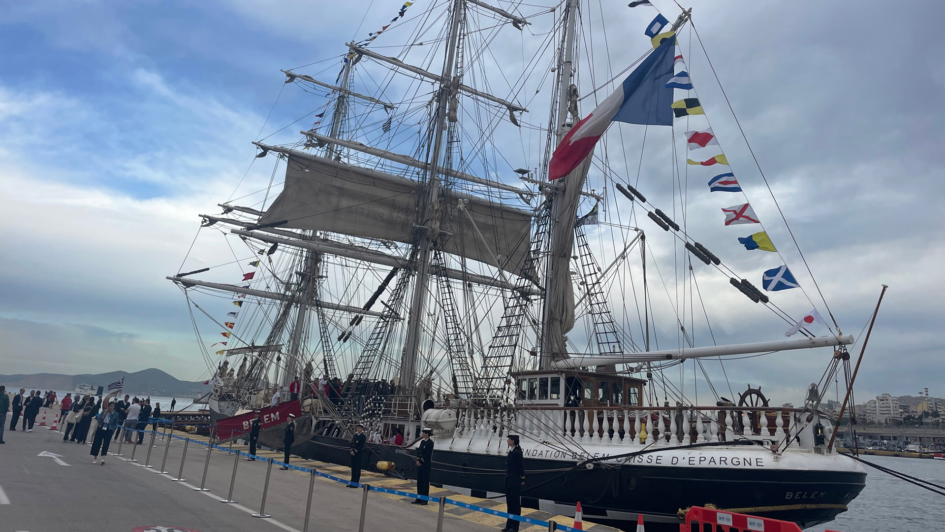 Δίπλα από το «Μπελέμ» είχε «δέσει» η τριήρης «Ολυμπιάς». Πρόκειται για ένα σκάφος που ναυπηγήθηκε το 1987 για λογαριασμό του ελληνικού Πολεμικού Ναυτικού και αποτελεί ομοίωμα αρχαίας ελληνικής τριήρους.