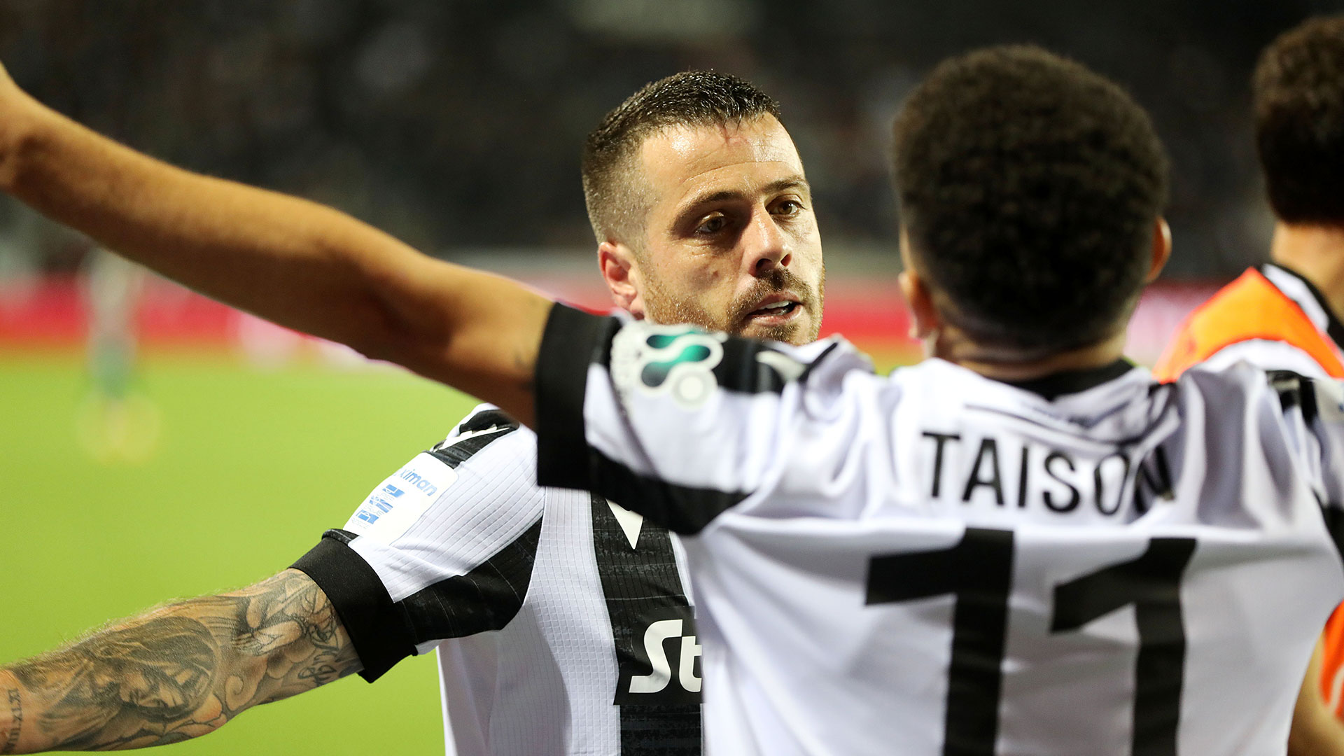 Η ομάδα του Ραζβάν Λουτσέσκου, για την 9η αγωνιστική των Play Off της Super League, νίκησε με τα γκολ των Τάισον (37′), Αντρίγια Ζίβκοβιτς (72’πεν., 90’+2′) και Αντελίνο Βιεϊρίνια (89′) εκμεταλλευόμενη σε απόλυτο βαθμό τις ευκαιρίες που της παρουσιάστηκαν.