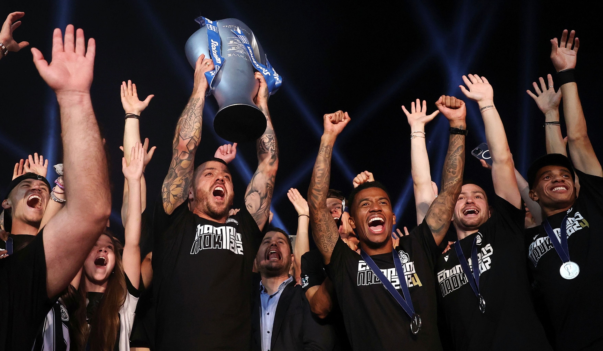 Λίγες ώρες νωρίτερα, περίπου 32.000 οπαδοί της ΑΕΚ είχαν γεμίσει ασφυκτικά την «Opap Arena» περιμένοντας να κάνουν αυτοί τη φιέστα του πρωταθλητή, αλλά τα νέα από τη Θεσσαλονίκη δεν ήταν τελικά καλά για την ομάδα τους. Αυτό δεν τους εμπόδισε να χειροκροτήσουν θερμά τον Ματίας Αλμέιδα και τους παίκτες του για τη μεγάλη προσπάθεια που έκαναν να κρατήσουν το τρόπαιο του πρωταθλητή στη Νέα Φιλαδέλφεια.