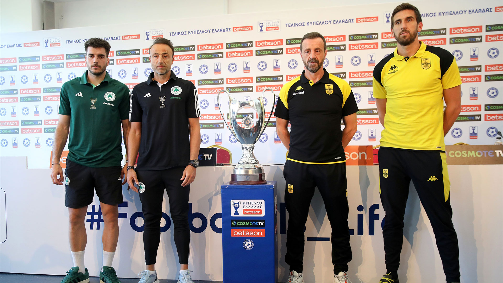 «Σε έναν τελικό δεν υπάρχει φαβορί. Οποιος το θέλει πιο πολύ θα το πάρει, κι εμείς το θέλουμε πολύ. Εχω τέσσερις τίτλους ως προπονητής. Το έργο του προπονητή είναι εύκολο όταν έχει καλούς παίκτες, και εγώ έχω. Γνωρίζω άριστα τους παίκτες, την ομάδα, τον σύλλογο», δήλωσε ο Χρήστος Κόντης, με τον Ακη Μάντζιο να τονίζει από την πλευρά του: «Ενας τελικός είναι τελικός, δεν υπάρχει φαβορί. Είναι θέμα ημέρας, κατά πόσο θα έχουμε προετοιμαστεί. Δεν έχουν οι ομάδες να κρύψουν κάτι. Δουλεύαμε σε κάτι διαφορετικό όσον αφορά τον Παναθηναϊκό. Η έλευση του Κόντη άλλαξε τα δεδομένα. Εχουμε απίστευτη ορμή και πίστη από τον κόσμο μας για να φέρουμε το Κύπελλο στη Θεσσαλονίκη. Αυτό το παιχνίδι είναι μια κατηγορία μόνο του».