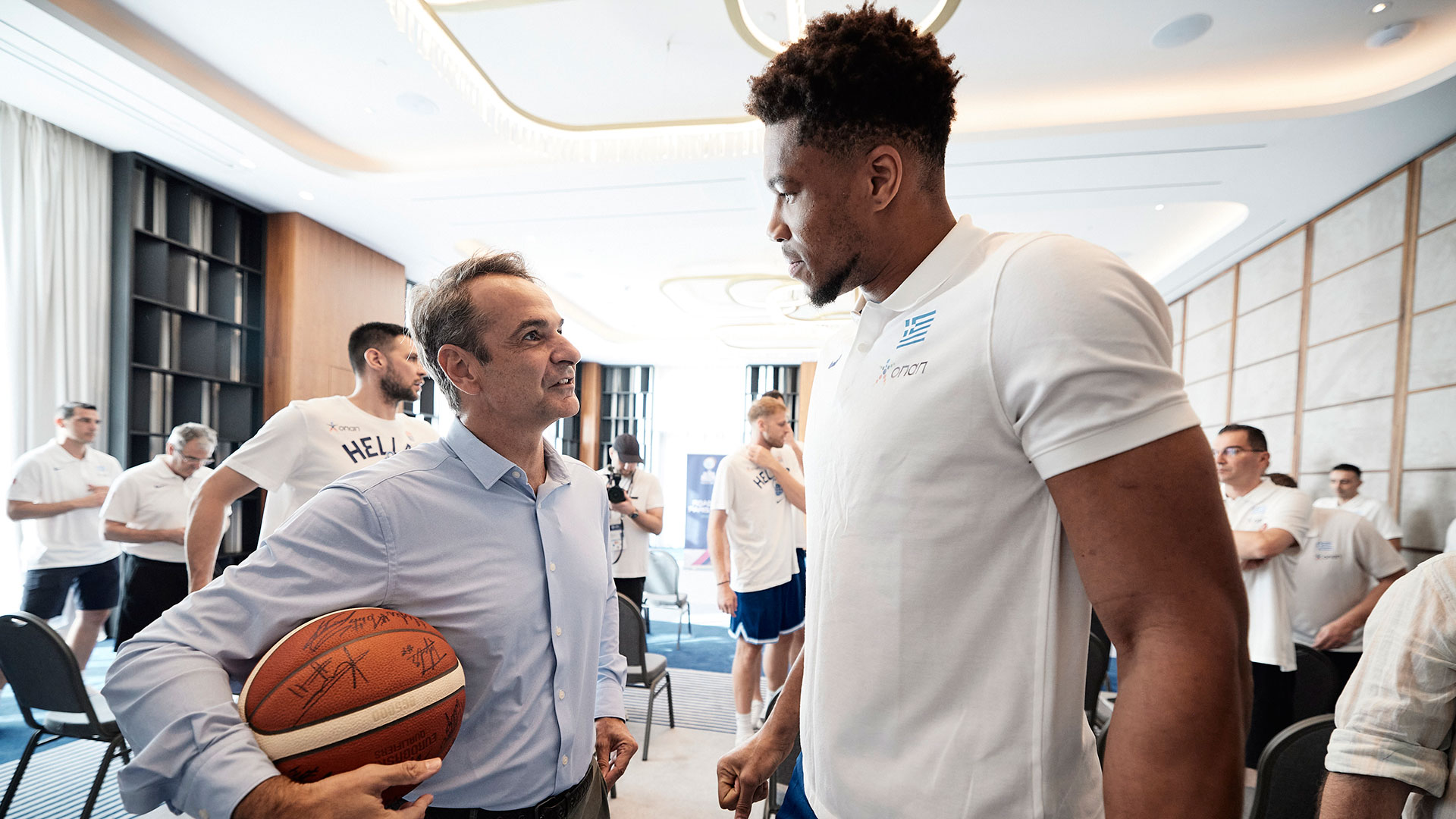 Με τους αθλητές της Εθνικής ομάδας μπάσκετ συναντήθηκε το απόγευμα της Δευτέρας ο πρωθυπουργός, Κυριάκος Μητσοτάκης, ενόψει του προολυμπιακού τουρνουά μπάσκετ που διεξάγεται στη χώρα μας.