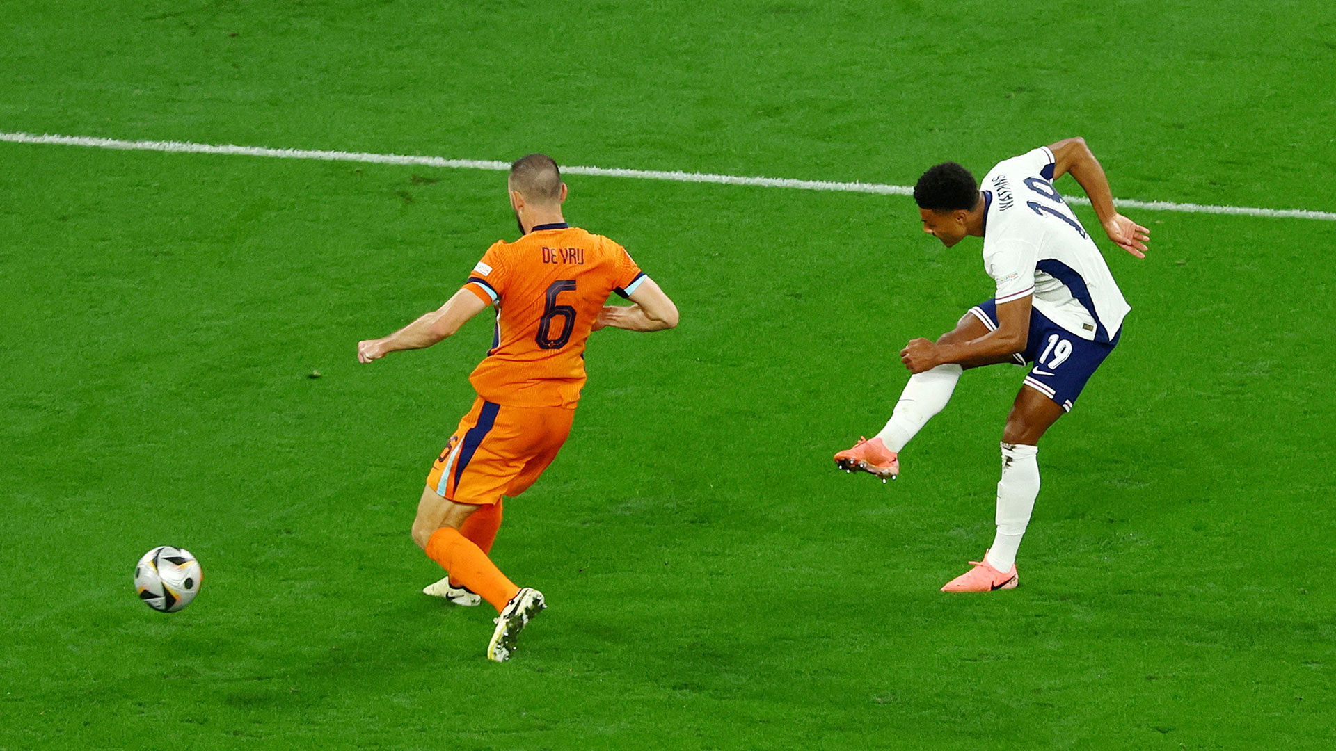 Απέναντι στα «Τρία Λιοντάρια» που είχαν την περισσότερη ώρα κατοχή της μπάλας, αλλά μία άκαρπη υπεροχή, ήταν η Ολλανδία που έχασε σημαντική ευκαιρία στο 65′. Από το φάουλ που εκτέλεσε ο Ντε Φράι στην «καρδιά» της αγγλικής περιοχής βρέθηκε ο Φαν Ντάικ που έκανε την προβολή κι ανάγκασε τον Πίκφορντ σε πολύ δύσκολη απόκρουση σε κόρνερ.