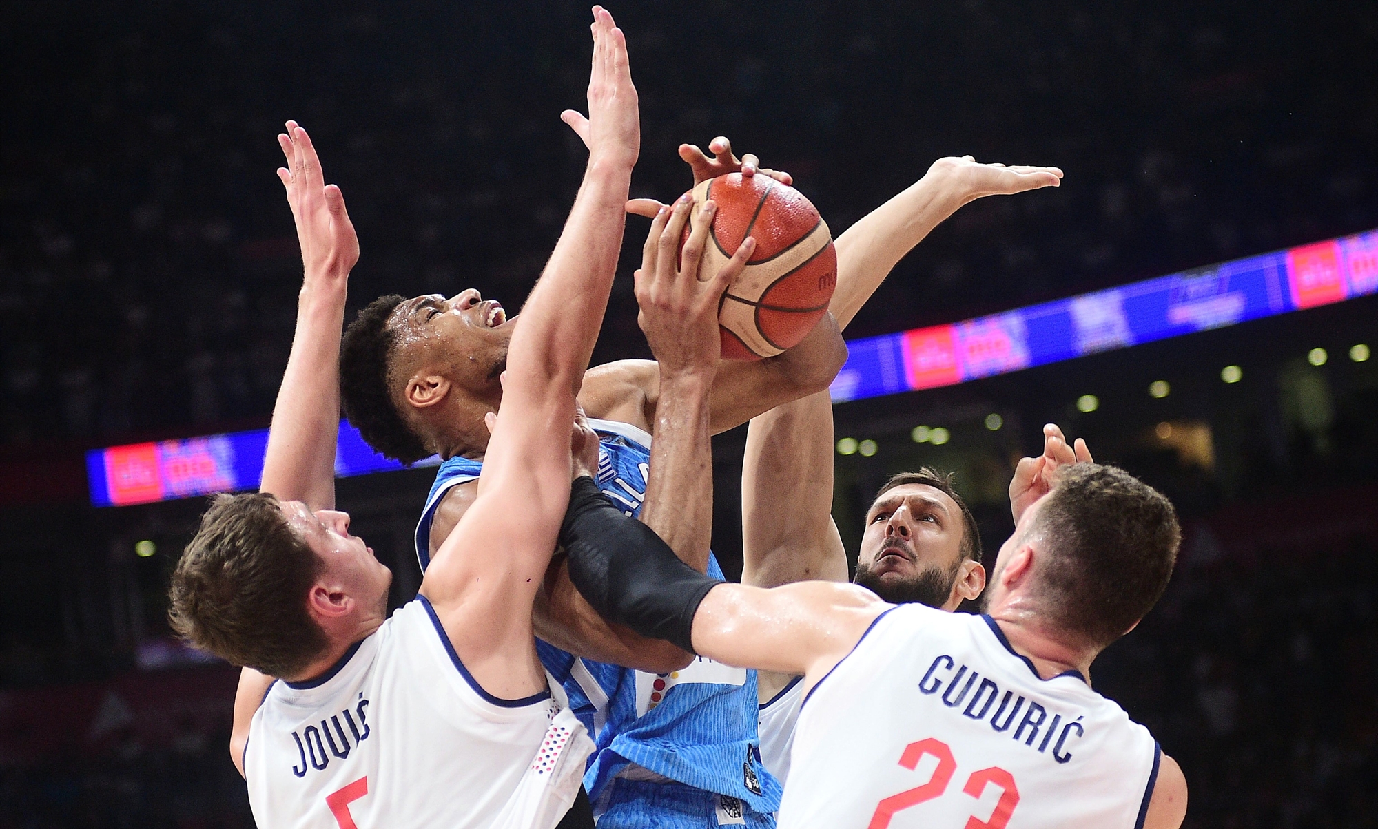 ΕΛΛΑΣ (17/35 δ., 9/26 τρ., 9/14 β., 21 ρ. [6-15], 19 ασ., 8 κλ., 14 λ., 1 μπλοκ): Γουόκαπ 7 (1/4 τρ., 4 ασ.), Λούντζης, Λαρεντζάκης 6 (2), Μωραΐτης 8 (1), Τολιόπουλος 4, Καλαϊτζάκης 5, Παπαγιάννης 6, Χαραλαμπόπουλος 2, Παπανικολάου 10 (2), Χουγκάζ 2, Αντετοκούνμπο 17 (7/12 δ., 3/7 β., 6 ρ., 4 ασ.), Μήτογλου 5 (1/5 τρ.).