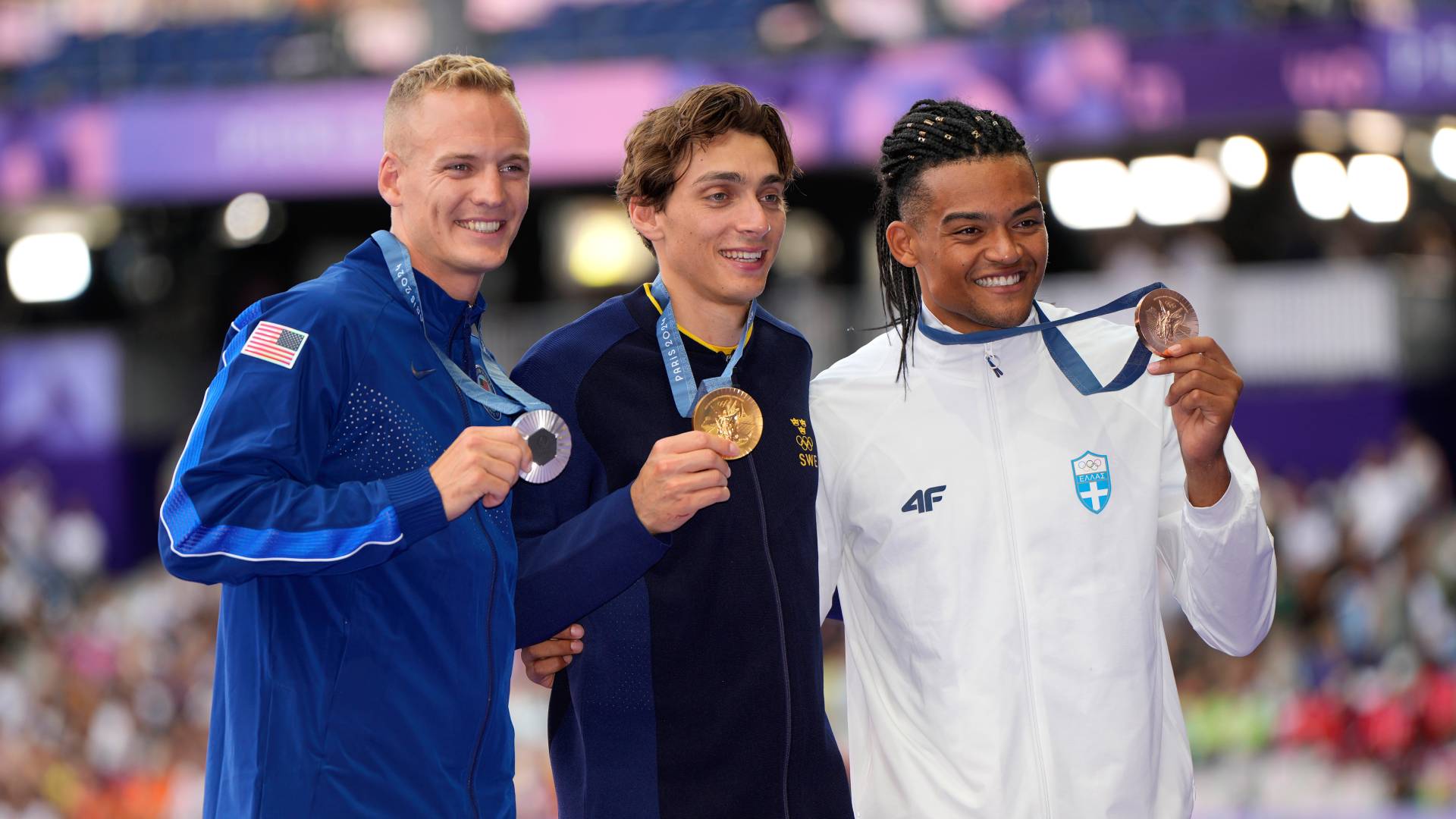 Ευτυχής δήλωσε ο Εμμανουήλ Καραλής μετά την απονομή του χάλκινου μεταλλίου στο άλμα επί κοντώ, στους Ολυμπιακούς Αγώνες στο Παρίσι. Ανέβηκε στο βάθρο με τον χρυσό ολυμπιονίκη Αρμαντ Ντουπλάντις και τον αργυρό ολυμπιονίκη, Σαμ Κέντρικς.