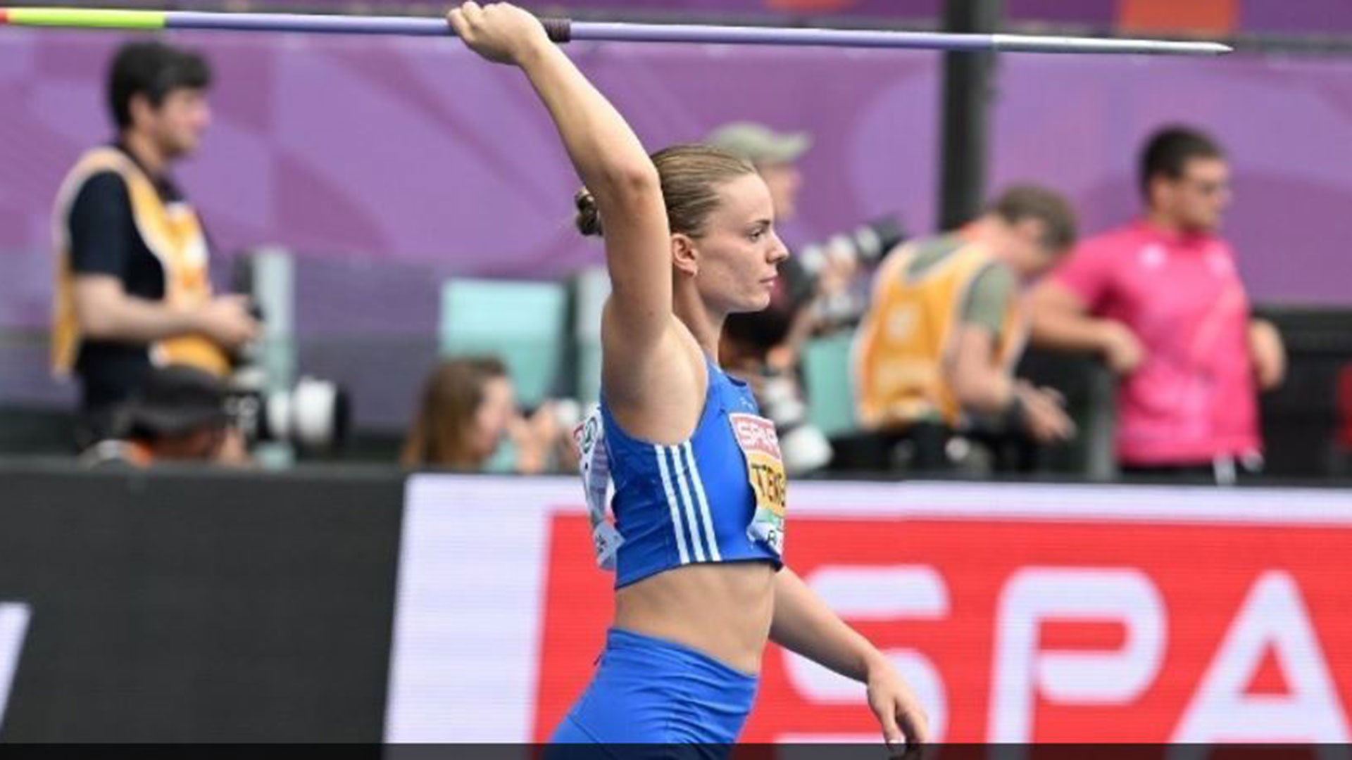 Η Ελληνίδα ακοντίστρια, αγωνίσθηκε στον Β` όμιλο και στην τρίτη προσπάθεια, έστειλε το ακόντιο της στα 63 μέτρα και 22 εκατοστά (στην πρώτη προσπάθεια έριξε 52.02 μέτρα και στην δεύτερη 61.09μ.), ενώ το όριο πρόκρισης ήταν 62 μέτρα.