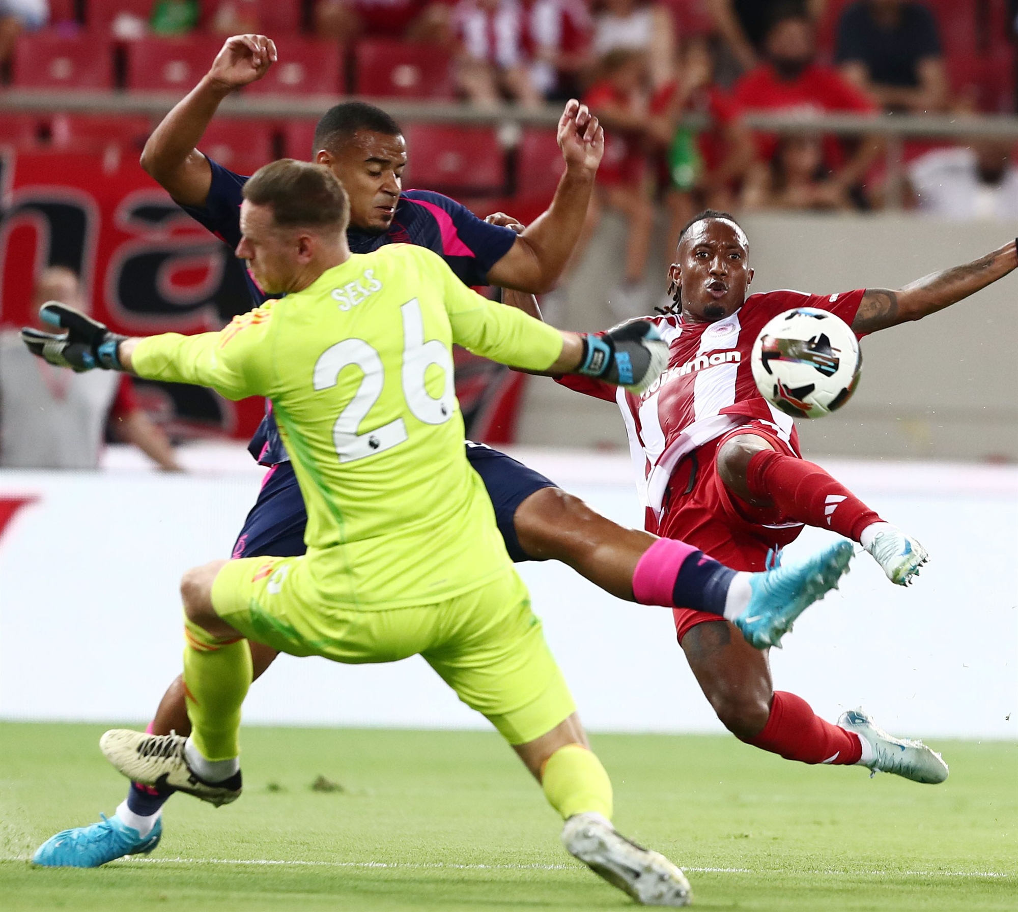 Η Νότιγχαμ χάλασε το πάρτι του Ολυμπιακού στο «Καραϊσκάκη». Οι «ερυθρόλευκοι» προβλημάτισαν στο πρώτο και τελευταίο τους φιλικό μπροστά το κοινό τους γνωρίζοντας την ήττα με 4-3 από την αγγλική ομάδα, σε μια βραδιά που ξεκίνησε σαν γιορτή με την παρουσίαση των δύο ευρωπαϊκών κυπέλλων, αλλά μόνο ως τέτοια δεν ολοκληρώθηκε, καθώς στο αγωνιστικό κομμάτι η ομάδα του Μεντιλίμπαρ εμφάνισε πολλές αδυναμίες.