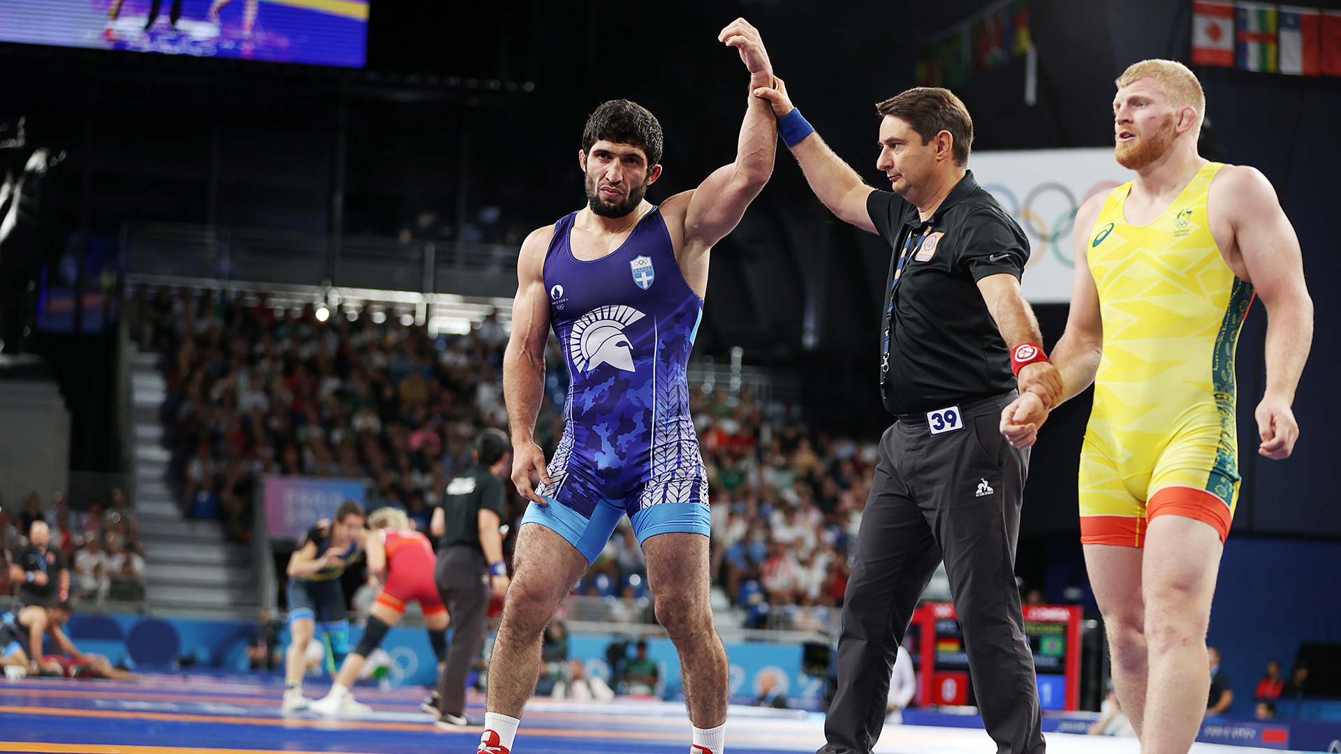 Ο Eλληνας πρωταθλητής επικράτησε με χαρακτηριστική ευκολία του Αυστραλού Τζέιντεν Αλεξάντερ Λόρενς με 10-0 και πήρε το εισιτήριο για την διεκδίκηση του χάλκινου μεταλλίου κόντρα στον Μάιλς Ναζέμ Αμινέ από το Σαν Μαρίνο, περίπου στις 19:15 (ώρα Ελλάδας).