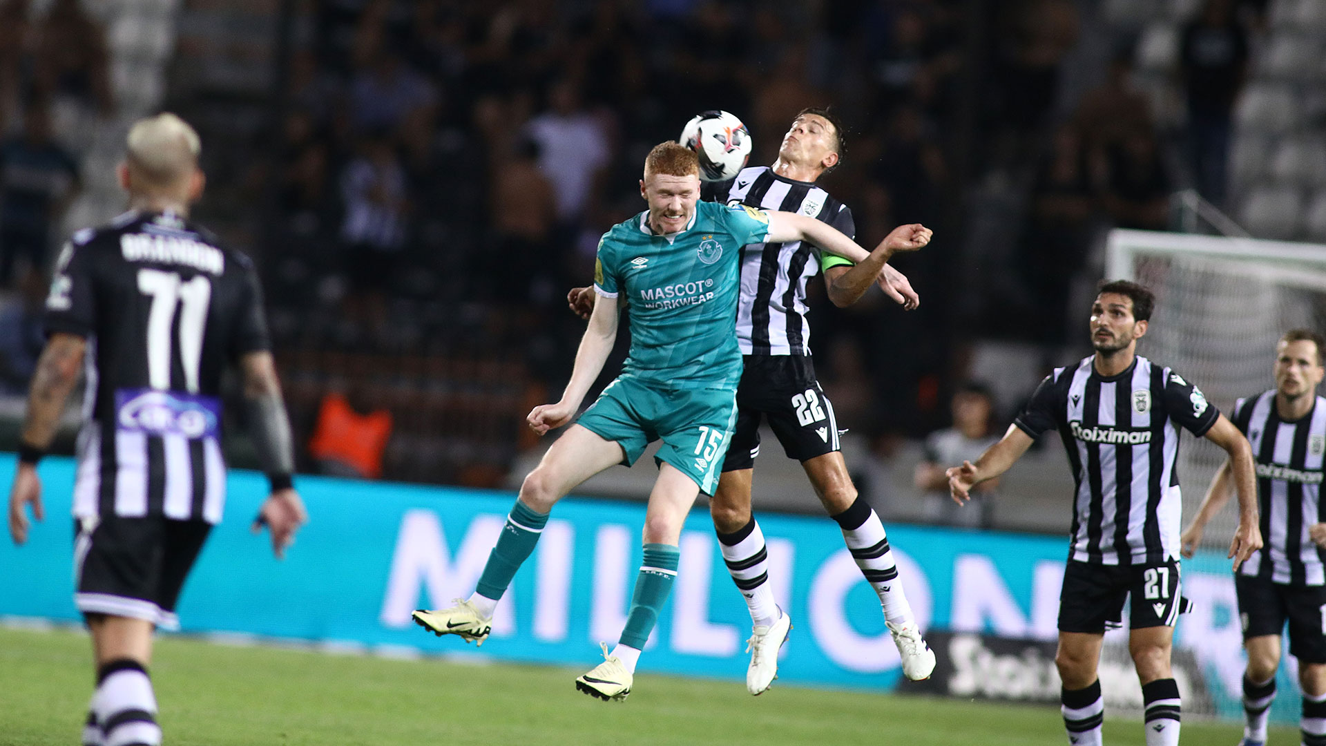 Πραγματοποιώντας την καλύτερη φετινή του εμφάνιση, ο ΠΑΟΚ επιβλήθηκε με 4-0 της Σάμροκ Ρόβερς στην Τούμπα, στο πρώτο ματς ανάμεσα στις δυο ομάδες για τα Play Off του UEFA Europa League. Το αυτογκόλ του Ντάνιελ Κλίρι (45’+5’)… έλυσε το γόρδιο δεσμό για να ακολουθήσουν τα τέρματα των Τάισον (47’), Γιάννη Κωνσταντέλια (67’) και Αμπντούλ Ραχμάν Μπάμπα (90’+4’) που έστειλαν πρόωρα – εκτός ποδοσφαιρικής «αυτοκτονίας» – την ομάδα του Ραζβάν Λουτσέσκου στο League Stage της δεύτερης τη τάξει ευρωπαϊκής διασυλλογικής διοργάνωσης.