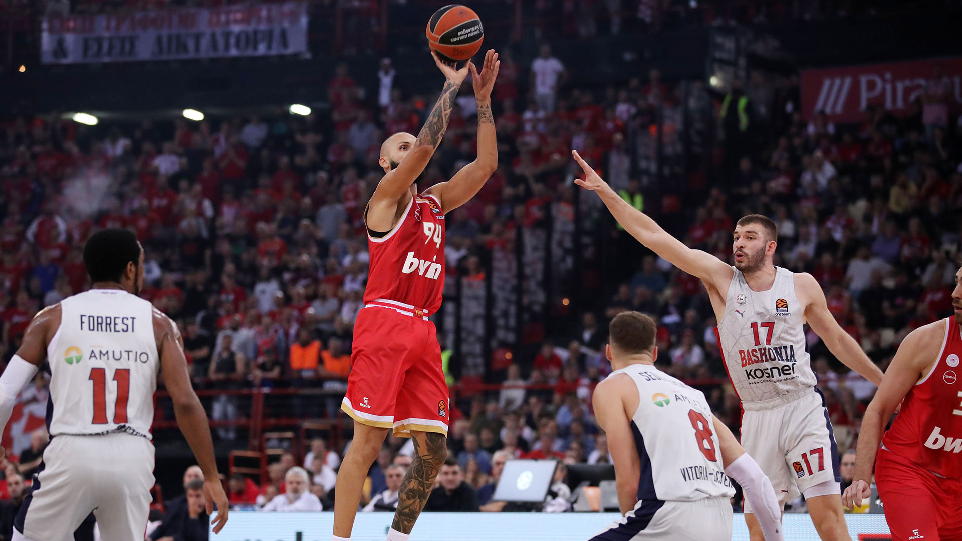 Ολυμπιακός (25/34 δ., 11/26 τρ. 9/10 β., 27 ρ. (19 α.- 8 ε.), 25 ασ., 7 κλ., 4 μ., 9 λ., 15 φ.): Γουόκαπ 3, Γουίλιαμς-Γκος 12 (5/6 δ., 2/2 β., 3 ρ.), Λαρεντζάκης 3, Βιλντόσα 6 (2/4 τρ., 3 ασ.), Φαλ 9 (4/4 δ., 1/2 β., 3 ρ., 2 ασ.), Παπανικολάου 8 (2/4 τρ., 2 ρ., 2 ασ.), Πίτερς 12 (6/6 δ., 0/3 τρ., 5 ρ., 2 ασ.), Μιλουτίνοφ 14 (5/8 δ., 4/4 β., 7 ρ.), ΜακΚίσικ 10 (2/3 δ., 2/4 τρ., 2 ρ., 3 ασ., 2 κλ.), Φουρνιέ 15 (2/5 δ., 3/7 τρ., 2/2 β., 9 ασ., 3 κλ.).
