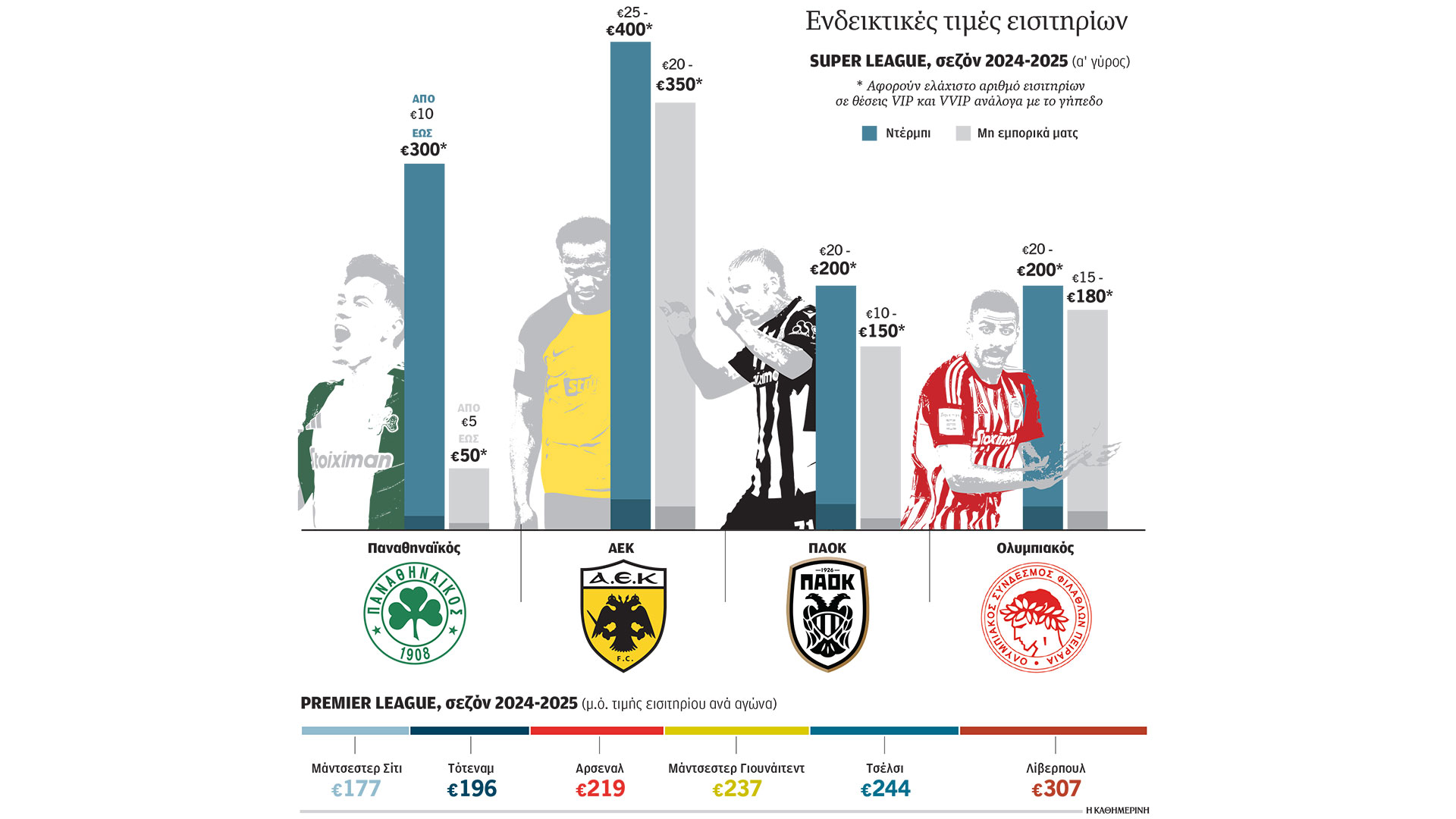 Αν δει κάποιος τις ανακοινώσεις των ομάδων με τις οποίες γνωστοποιούν τις τιμές των εισιτηρίων τους για τα προσεχή εντός έδρας παιχνίδια, αυτές χωρίζονται σε δύο κατηγορίες. Τα ντέρμπι και τα μη εμπορικά ματς, με το κόστος φυσικά να διαφέρει, αφού παίζει πάντα ρόλο και η εμπορικότητα του αντιπάλου. Αλλωστε κάθε αγώνας είναι ένα προϊόν που οι ΠΑΕ θέλουν να «πουλήσουν» και ισχύει και σ’ αυτή την περίπτωση ο νόμος της αγοράς: για τα ματς που υπάρχει αυξημένη ζήτηση οι τιμές ανεβαίνουν, ενώ στα υπόλοιπα υποχωρούν και κινούνται σε πιο λογικό πλαίσιο.