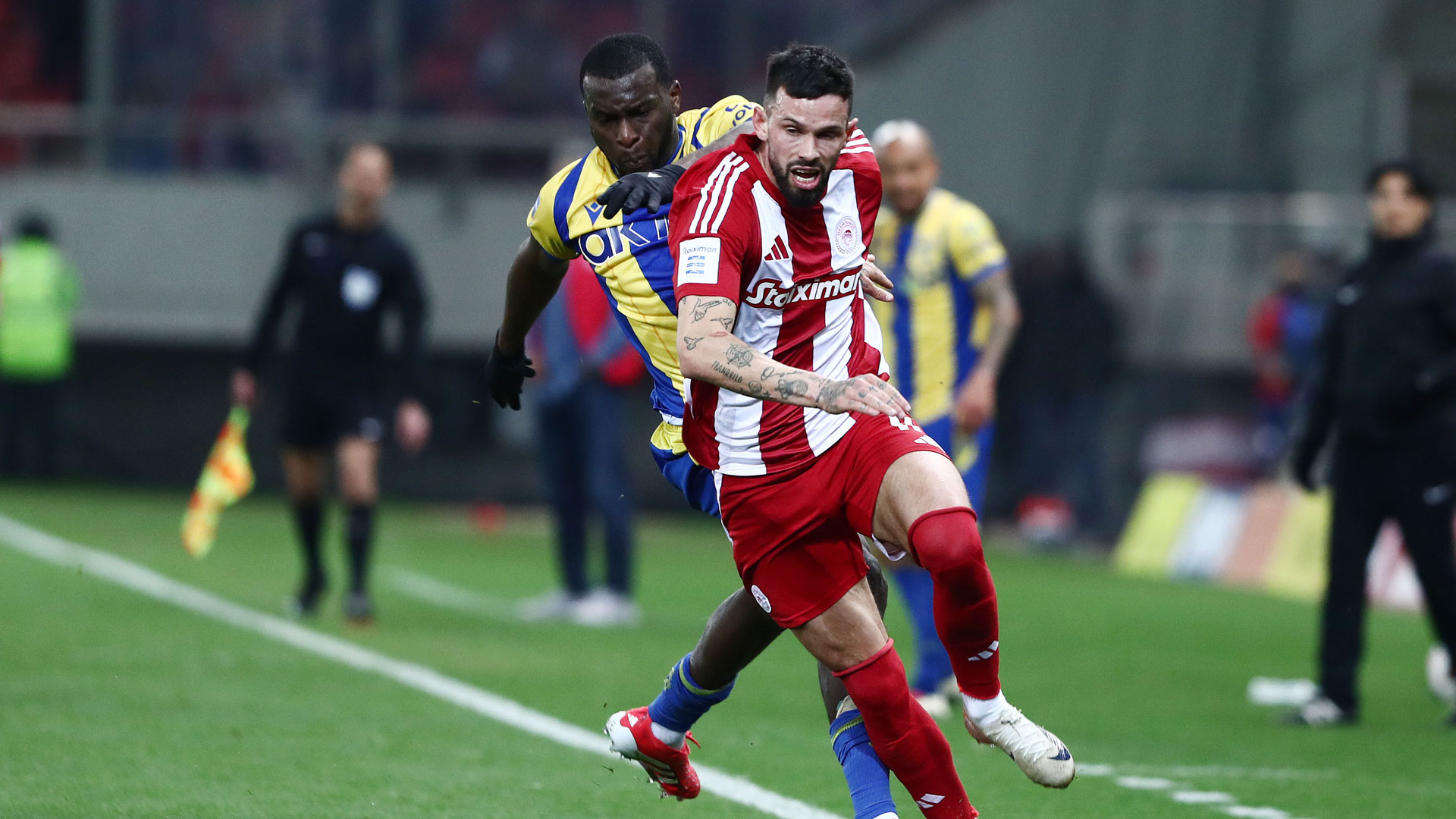 ΟΛΥΜΠΙΑΚΟΣ (Χοσέ Λουίς Μεντιλίμπαρ): Τζολάκης, Κοστίνια, Μπιανκόν, Πιρόλα, Ορτέγκα, Μουζακίτης, Έσε (63΄ Βέλντε), Τσικίνιο (83΄ Ντάνι Γκαρθία), Κωστούλας (75΄ Πάλμα), Ζέλσον (83΄ Γιάρεμτσουκ), Ελ Κααμπί.