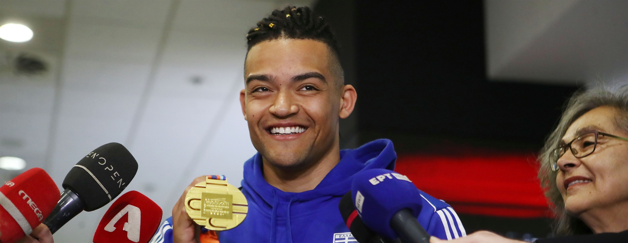 Εντυπη έκδοση. Σε εορταστική ατμόσφαιρα που είχαν ετοιμάσει οι φίλοι, οι συγγενείς και οι άνθρωποι του κλασικού αθλητισμού στην αίθουσα υποδοχής του αεροδρομίου «Ελευθέριος Βενιζέλος» βρέθηκαν οι αθλητές και οι αθλήτριες του στίβου κατά την επιστροφή τους από το ευρωπαϊκό πρωτάθλημα κλειστού στίβου της Ολλανδίας. Πρωταγωνιστής της γιορτής ήταν ο Εμμανουήλ Καραλής, ο οποίος, εκμεταλλευόμενος την απουσία του υπεραθλητή Αρμαντ Ντουμπλάντις, κατέκτησε το πρώτο του χρυσό ευρωπαϊκό μετάλλιο. Την πρώτη θέση του βάθρου μοιράστηκε με τον Ολλανδό Μένο Βλον, αφού, αμφότεροι, είχαν καλύτερο άλμα στα 5,90 μ.
